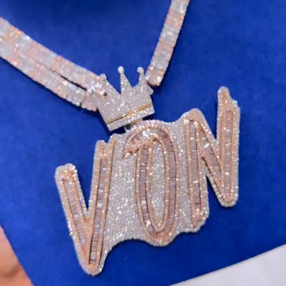 Colgantes y abalorios de joyería fina Unisex, colgante de joyería de rapero con diamantes personalizados de Plata de Ley 925 blanca