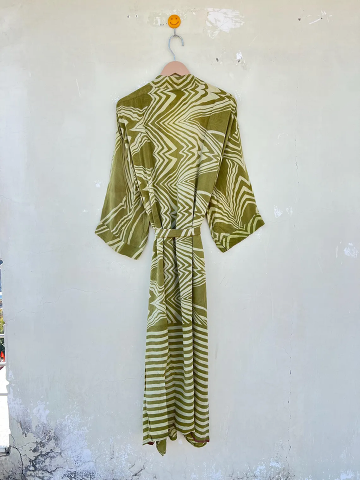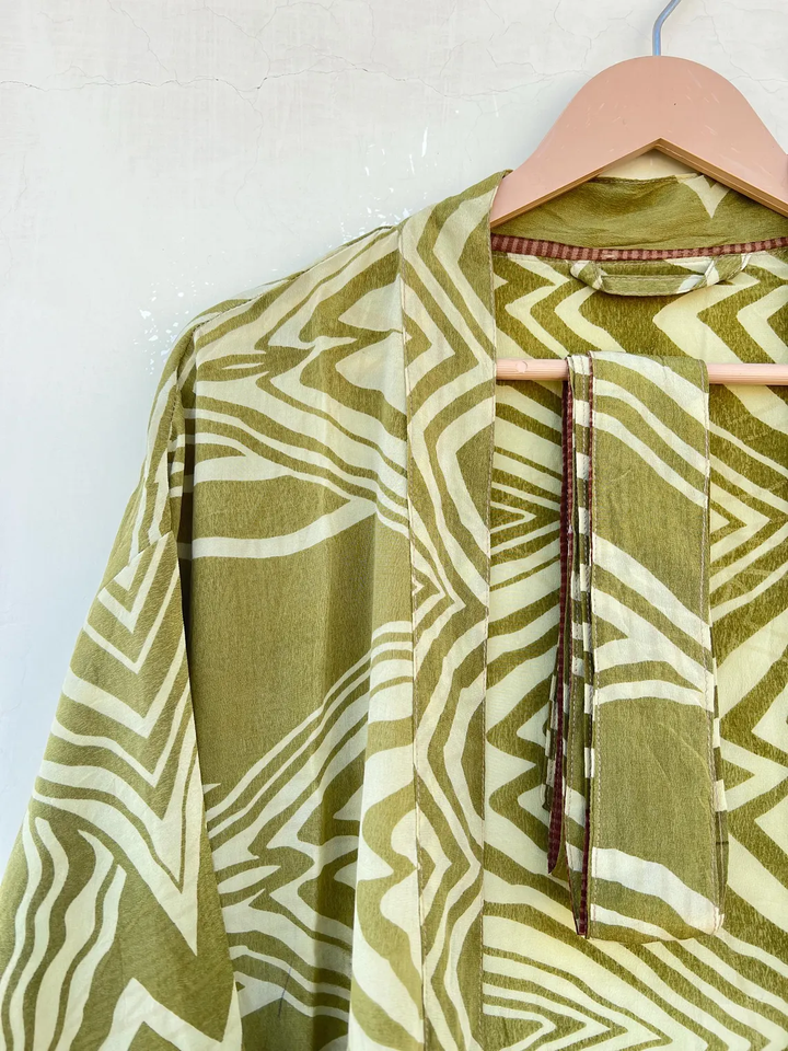 Kimono Unisex de Seda Crepé 100% Hecho a Mano de Alta Calidad para Primavera, Verano y Otoño, con Cuello en V y Cierre de Cordón, de Secado Rápido y Suave