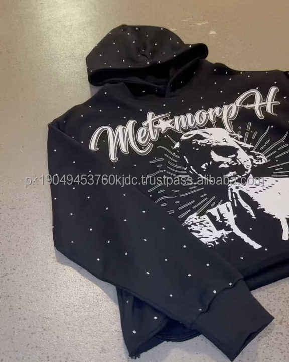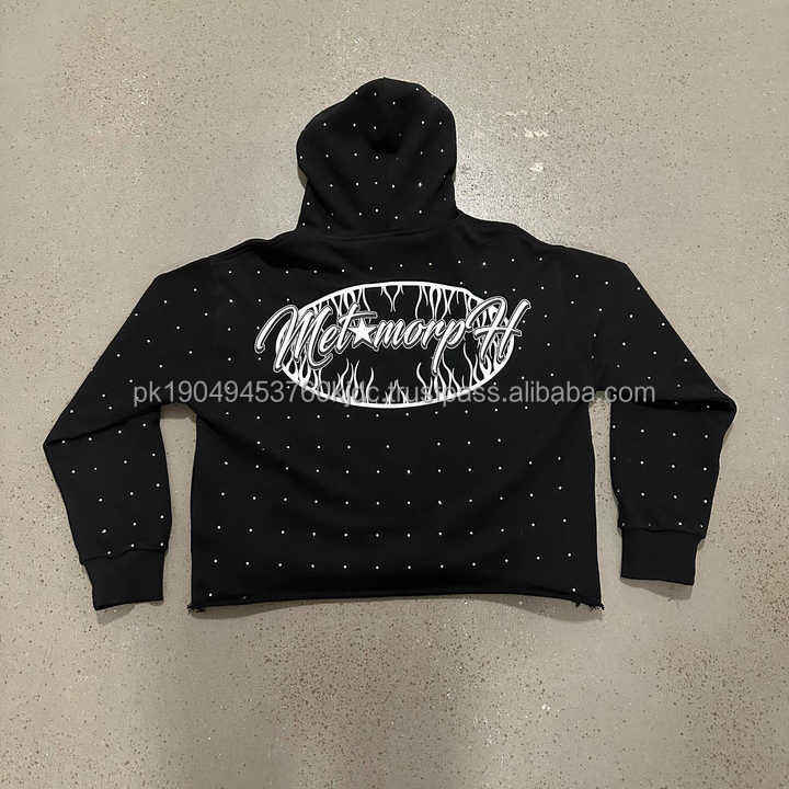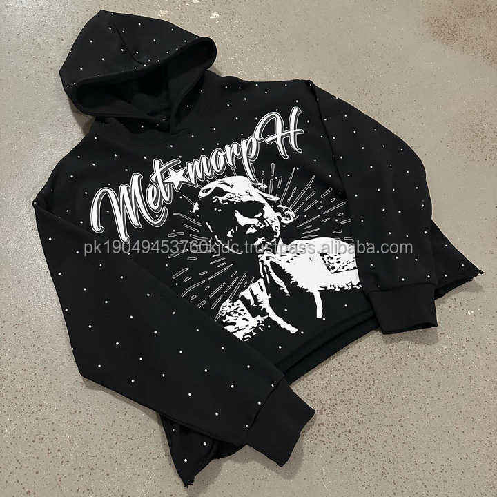 Sudadera con capucha de lana de peso pesado unisex con diamantes de imitación de secado rápido y transpirable Top Trending Winter Street Wear con patrón 3D