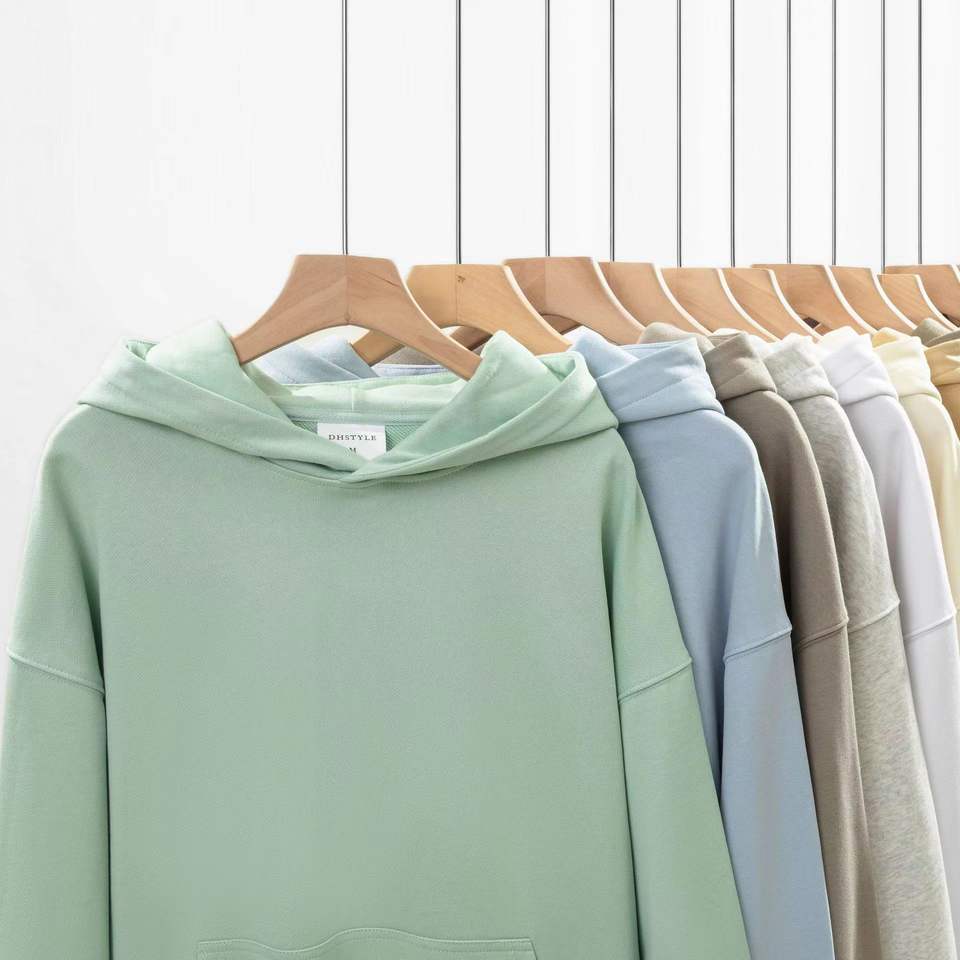 Sudaderas con capucha de felpa francesa de algodón 100% de alta calidad Unisex de manga larga 380gsm de talla grande logotipo personalizado sin cordón cuello con capucha