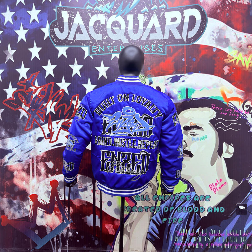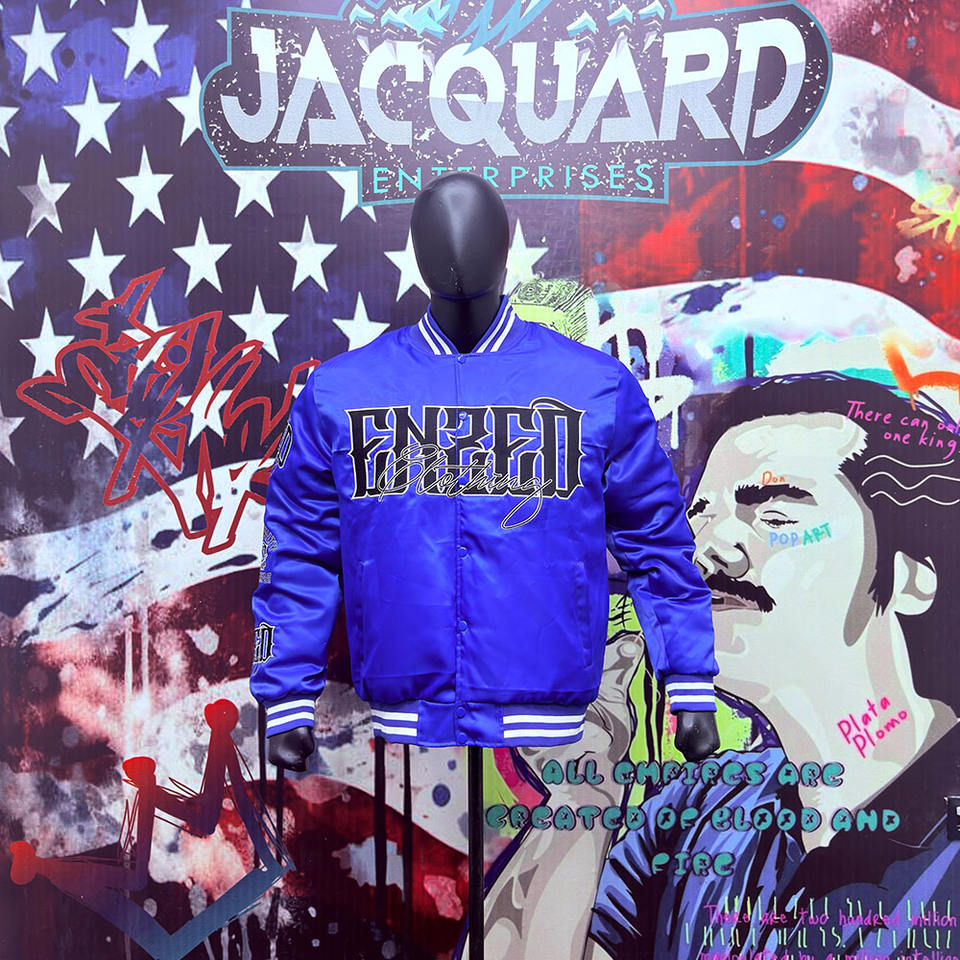 Chaquetas de satén de béisbol personalizadas de alta calidad unisex chaqueta de satén de seda Bombardero a granel de moda de invierno de doble botonadura con plumas