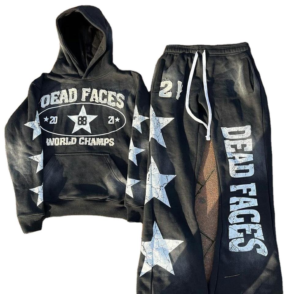 Sun Faded apenado bordado pantalones de chándal y Sudadera con capucha Set