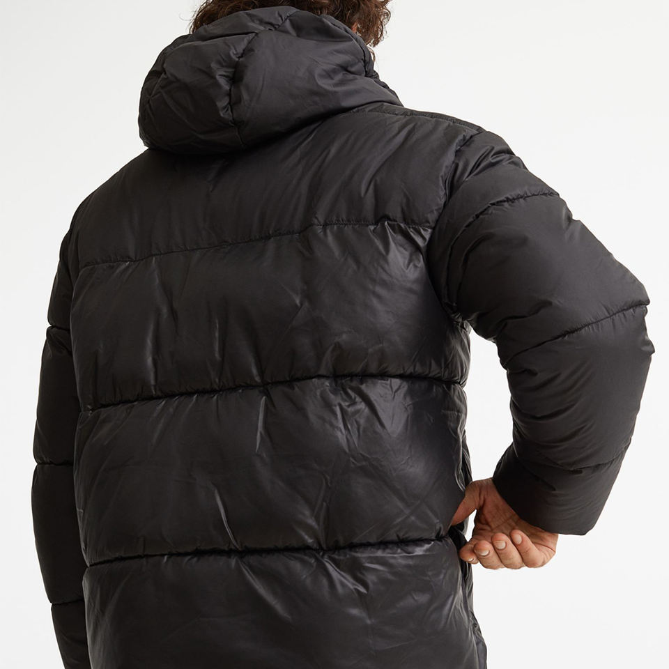 Chaqueta acolchada unisex de alta calidad personalizada para hombre, de talla grande, recién llegado, diseño deportivo negro, capucha, lona acolchada, cálida e informal