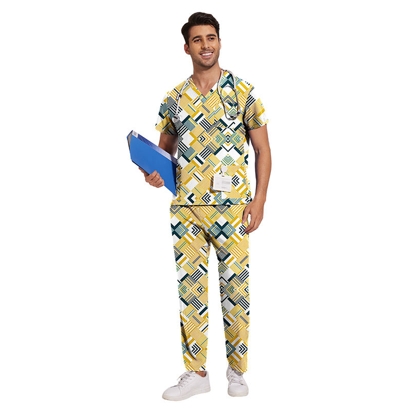 Uniformes de enfermera con cuello en V de LICRA de poliéster de verano de alta calidad Unisex, uniformes con estampado médico para Hospital, enfermería cómoda
