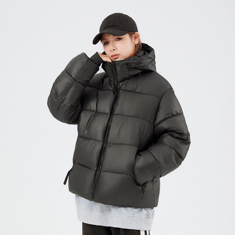 Chaqueta acolchada de invierno con capucha Unisex, ropa de abrigo de gran tamaño cálida con cierre de cremallera, ropa de calle negra, abrigo con logotipo personalizado disponible