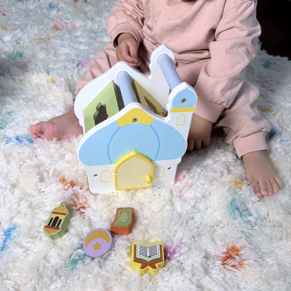 Clasificador de formas de símbolos islámicos Unisex Montessori, juguete de madera maciza para niños seguro para 2-4 años y rango de edad de 5-7 años