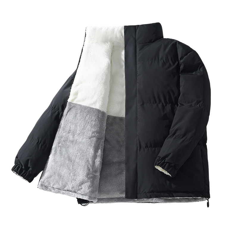 Chaqueta Acolchada de Primavera Unisex, Versión Coreana, Doble Cara, Cuello Redondo Holgado, Regular, Impermeable, Ecológica, Cálida, con Parches en la Parte Delantera