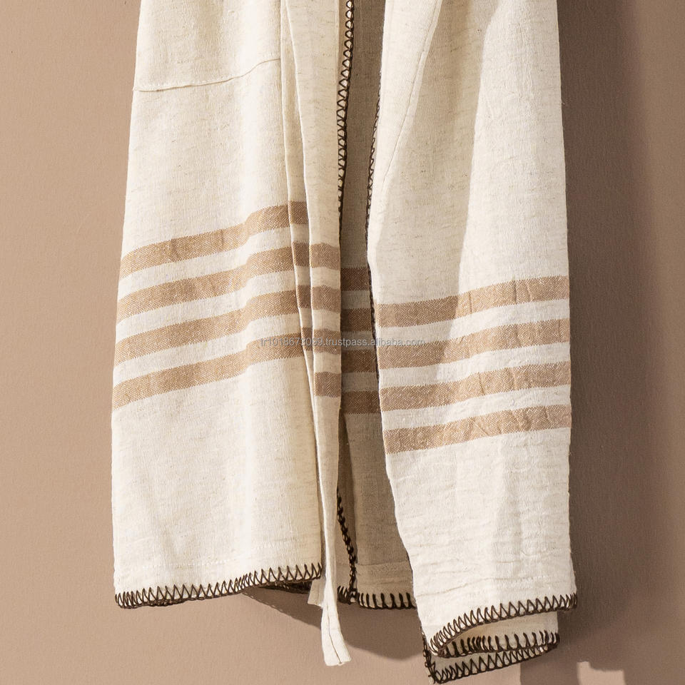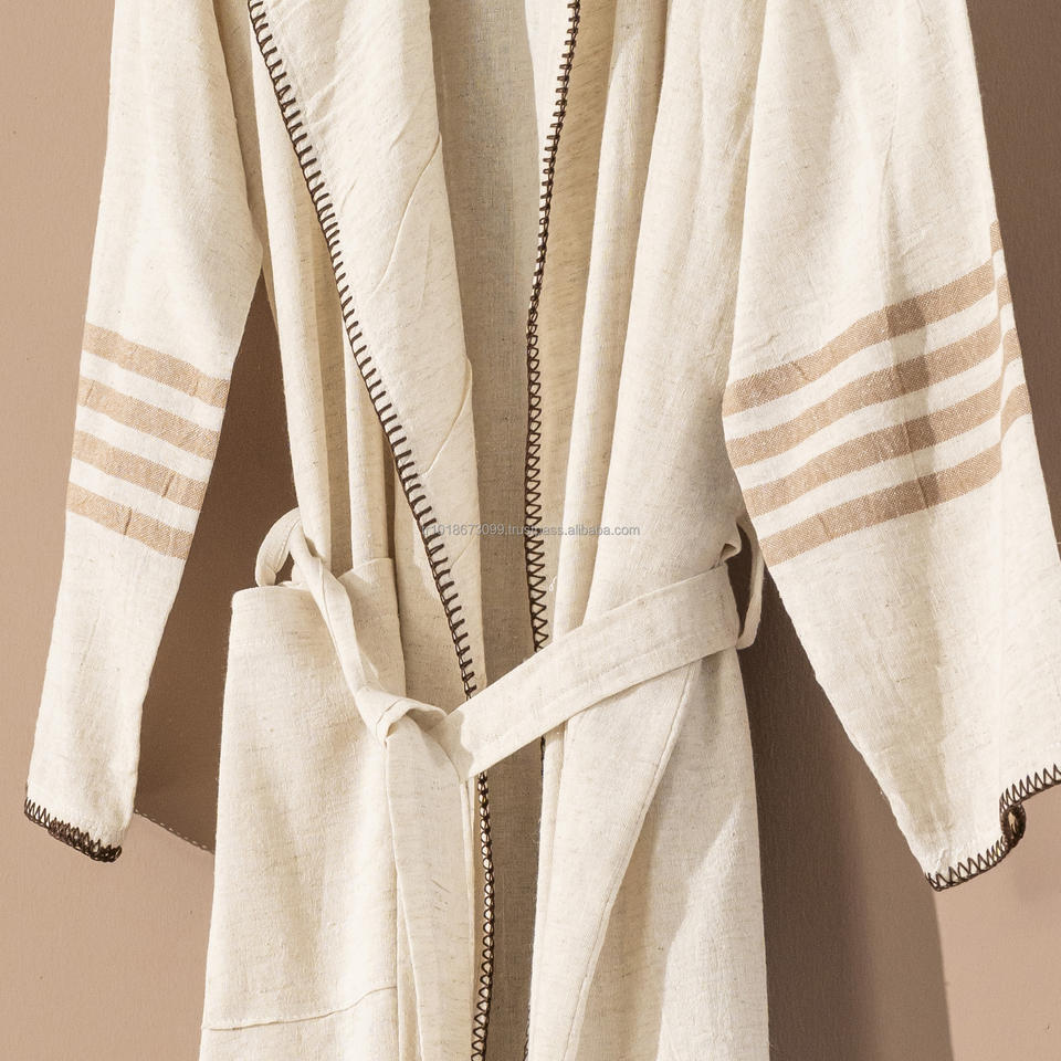 Albornoz de lino y algodón unisex hecho en Turquía, tela transpirable, peso ligero, secado rápido, verano, todo el año, ropa de dormir, ropa de salón