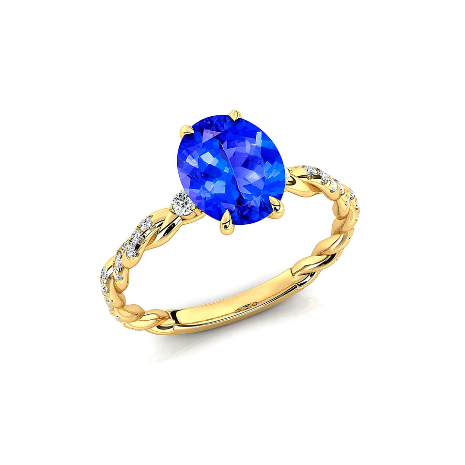 Anillos de Piedra Natalicia Unisex de Lujo, Oro Sólido de 18k con Incrustaciones de Tanzanita Natural, Anillo de Bodas con Diamantes Solitarios Reales, ODM