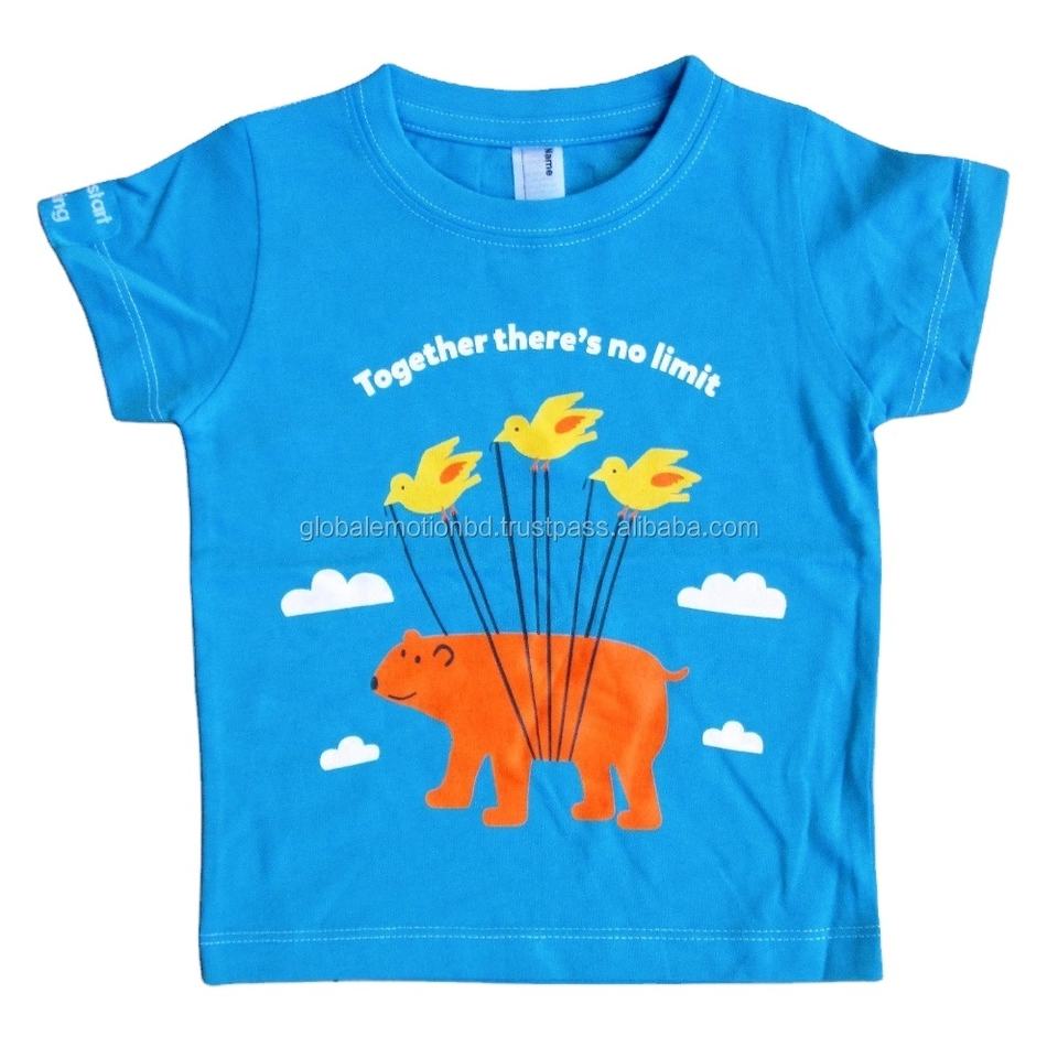 Camisetas Unisex de cuello redondo para niños 100% algodón peinado Formal Animal impreso Toss patrón de animales lindos para niños tela de punto