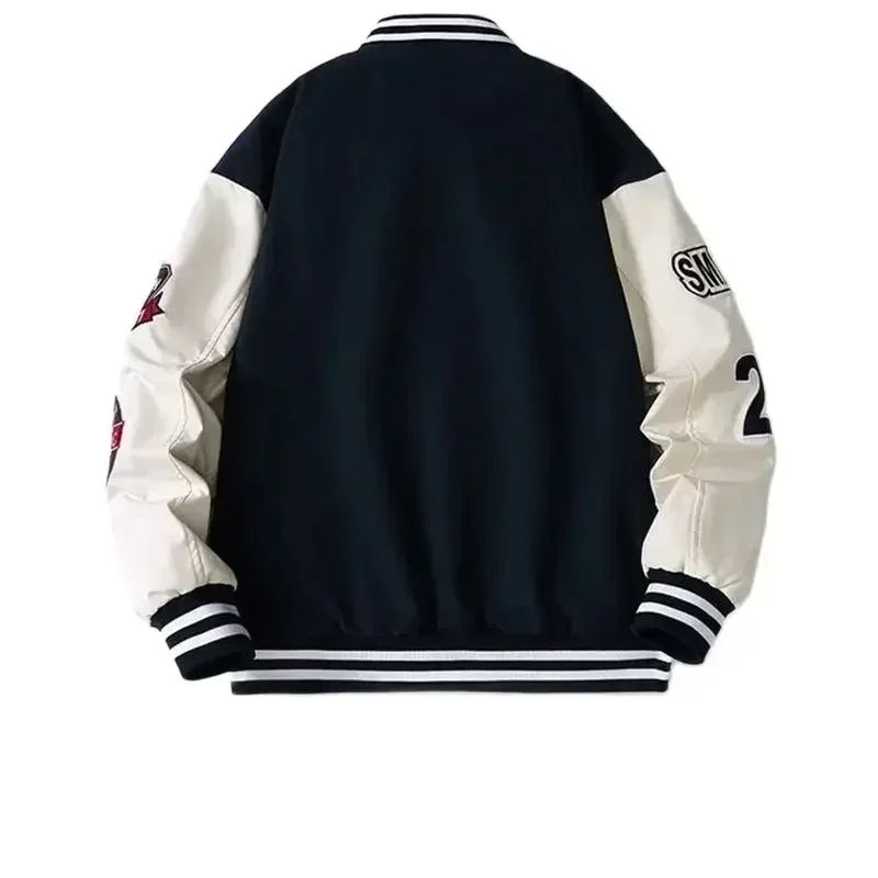 Chaqueta Universitaria Unisex de Poliéster/Algodón, Cuello Alto, Servicio OEM ProFitter, Estilo Urbano, Parches de Letras, Diseño Combinado para Hombre