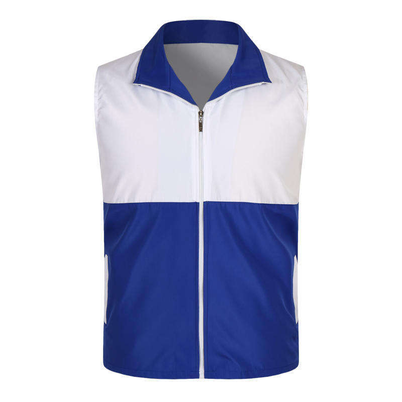 Chaleco Unisex de Poliéster Blanco y Azul con Cierre Frontal para Uniformes Escolares