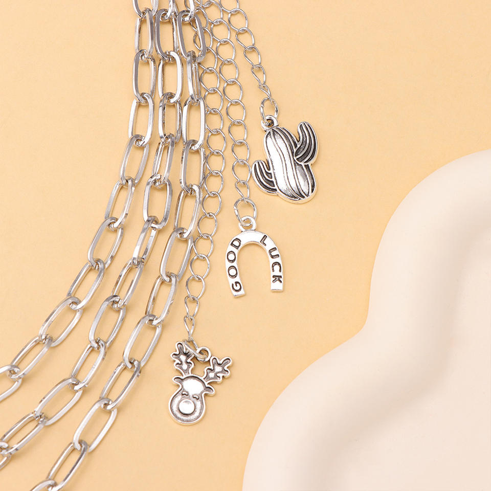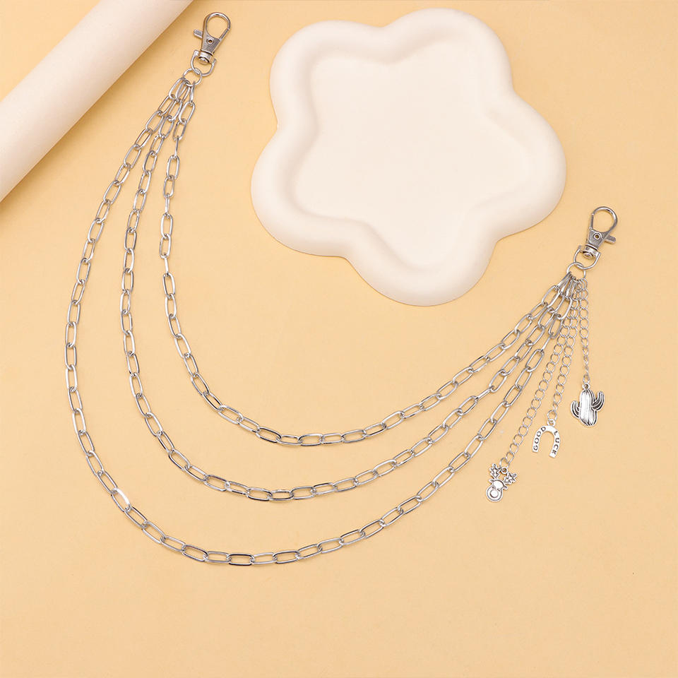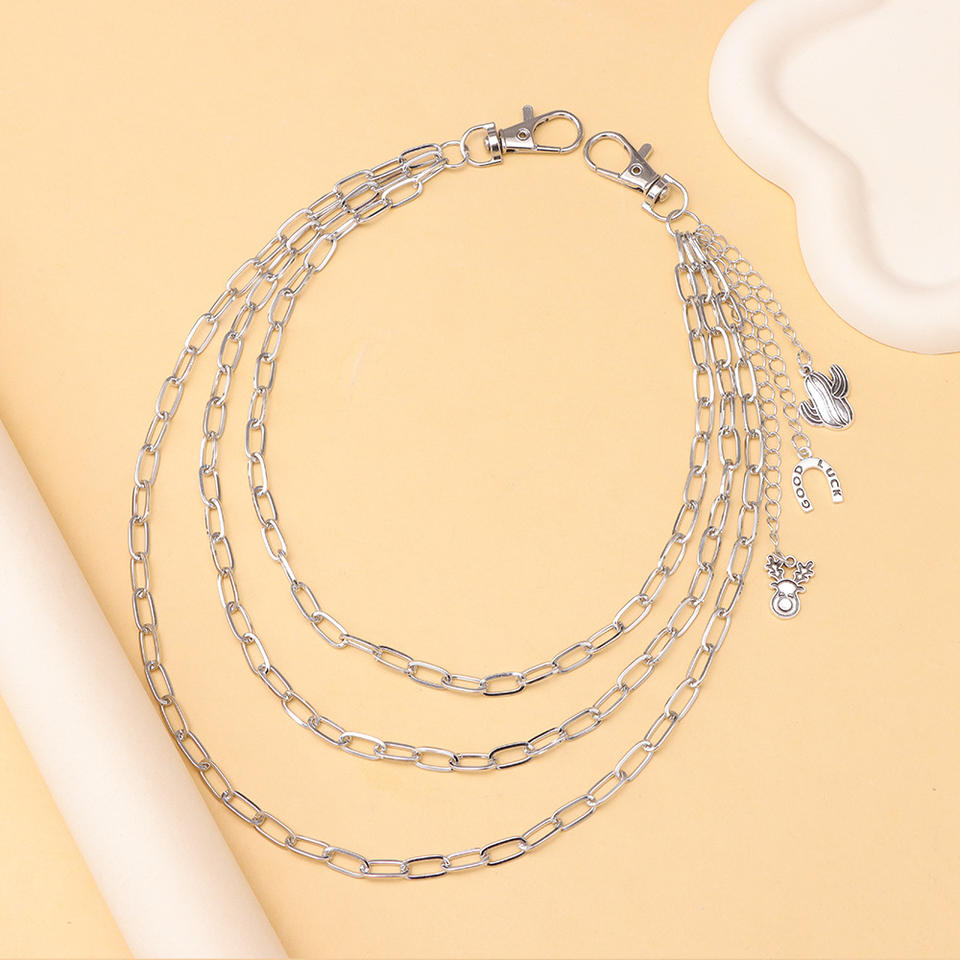 Cadena de cintura unisex estilo punk de varias capas, cadena corporal de aleación de zinc con diseño de cactus y herradura, estilo hip hop, moda casual.