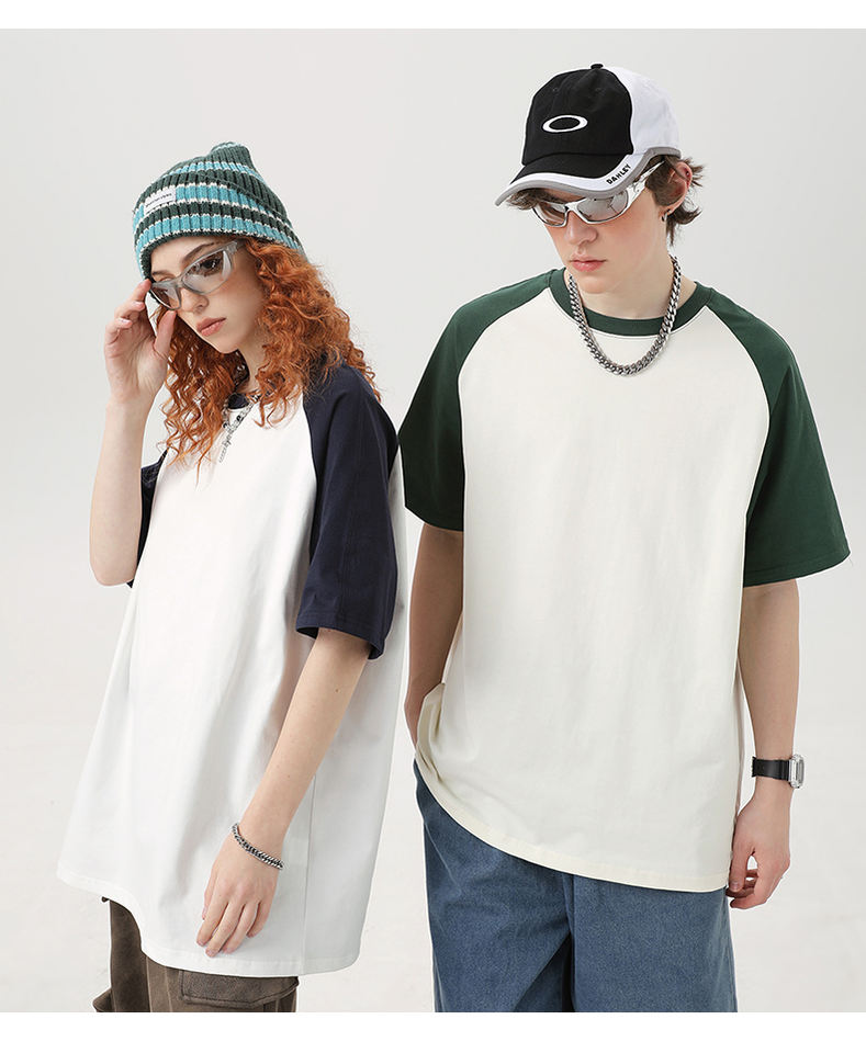 Camiseta unisex de manga raglán con bloqueo de color, camisetas de manga corta con cuello redondo, camiseta personalizada en blanco de algodón puro 260GSM