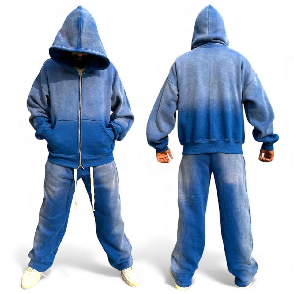 Conjunto Deportivo Unisex de Corte Regular, Grueso, para Otoño, Estilo Urbano, de 420g, Resistente al Viento, de Secado Rápido, con Estampado Acid Wash