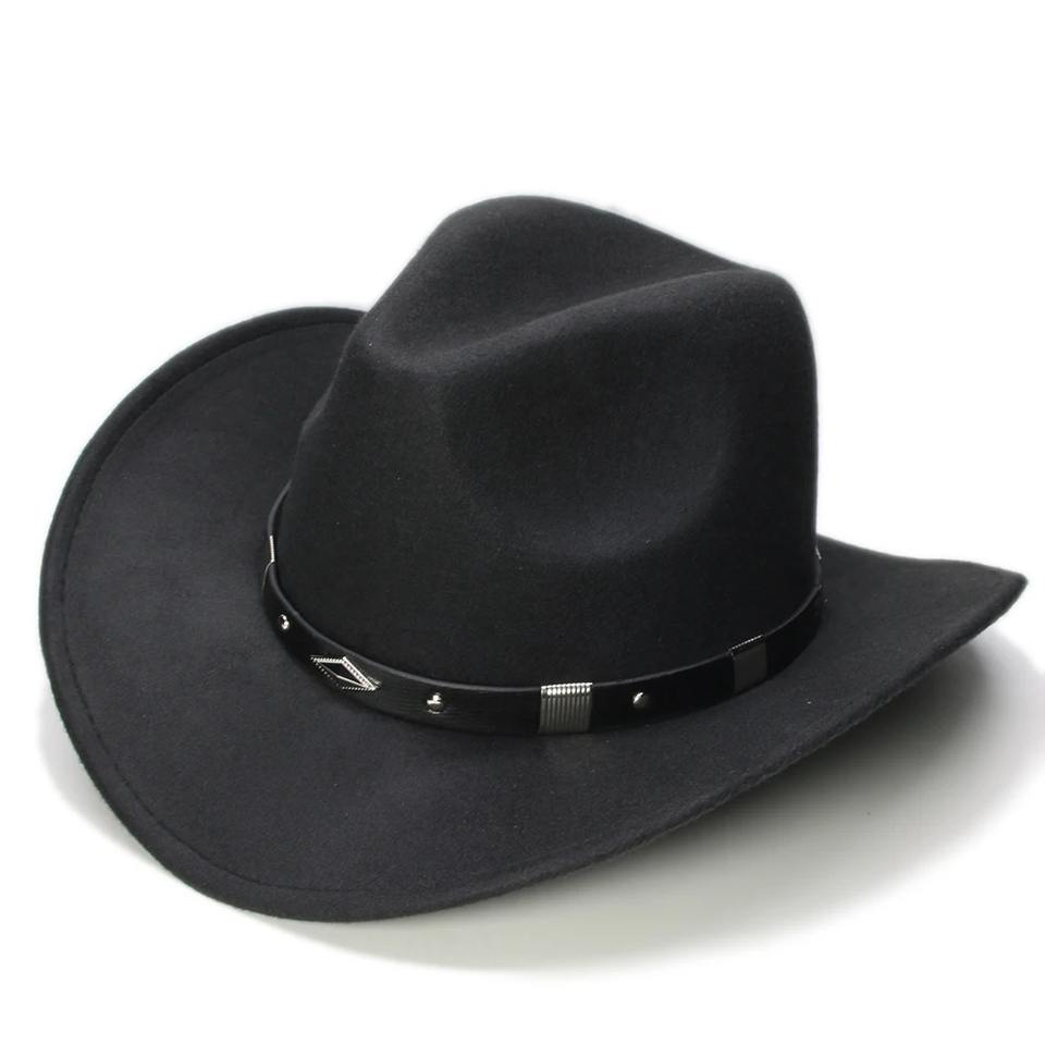 Unisex Retro Geometría Cuero Banda Lana Ala Ancha Vaquero Sombrero Occidental Niño Vaquera Bowler Cap 61cm/57cm/54cm Tamaños para Casual