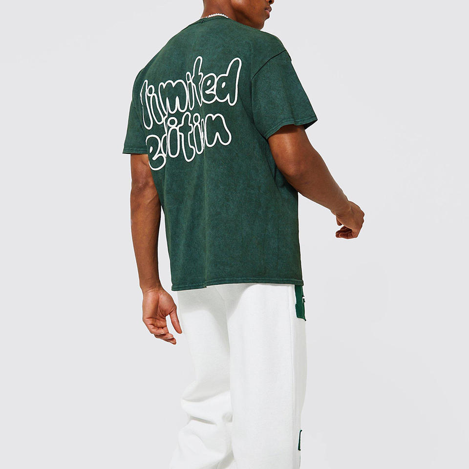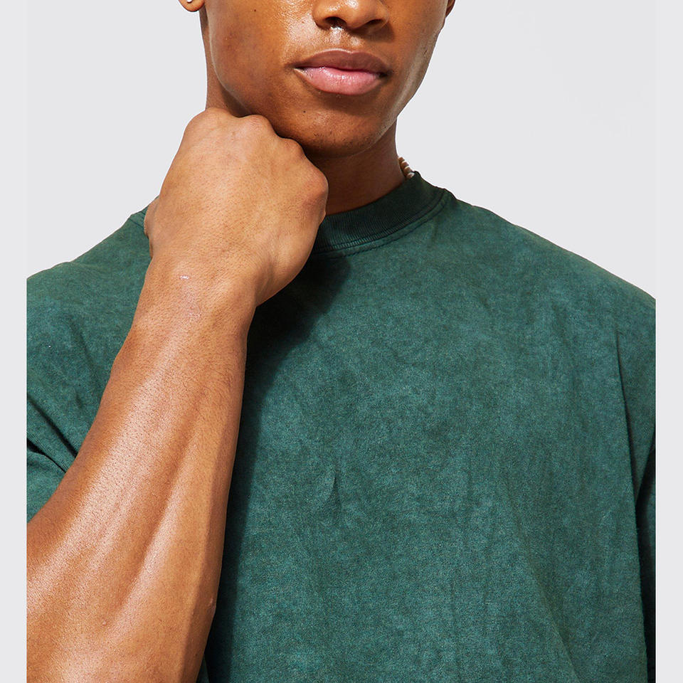 Camiseta unisex estilo lavado ácido, Camiseta de algodón desgastada de gran tamaño con dobladillo crudo y Ambiente de moda callejera vintage