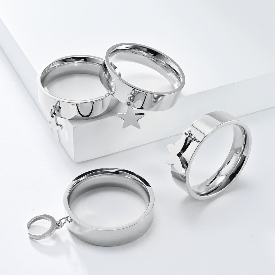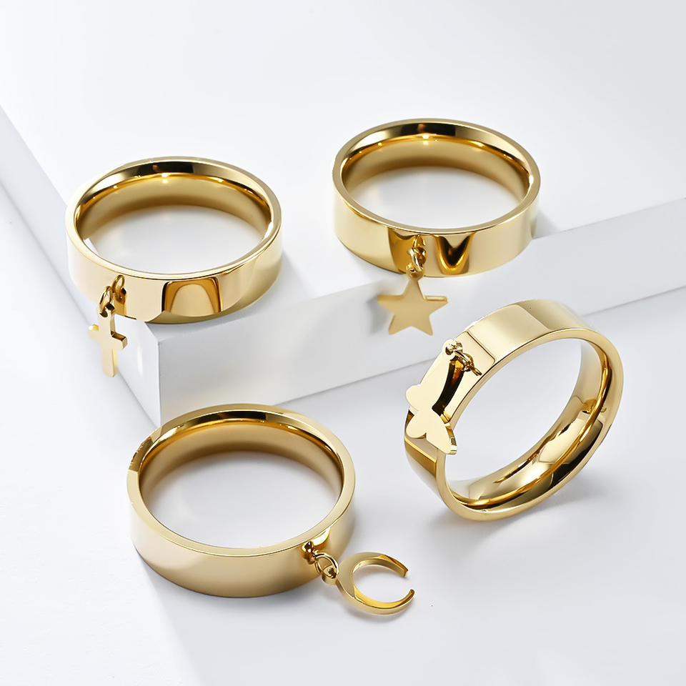 Anillos Unisex de Acero de Titanio con Dijes de Estrella, Luna, Mariposa y Cruz, Joyería de Moda, Anillo de Regalo K-R814