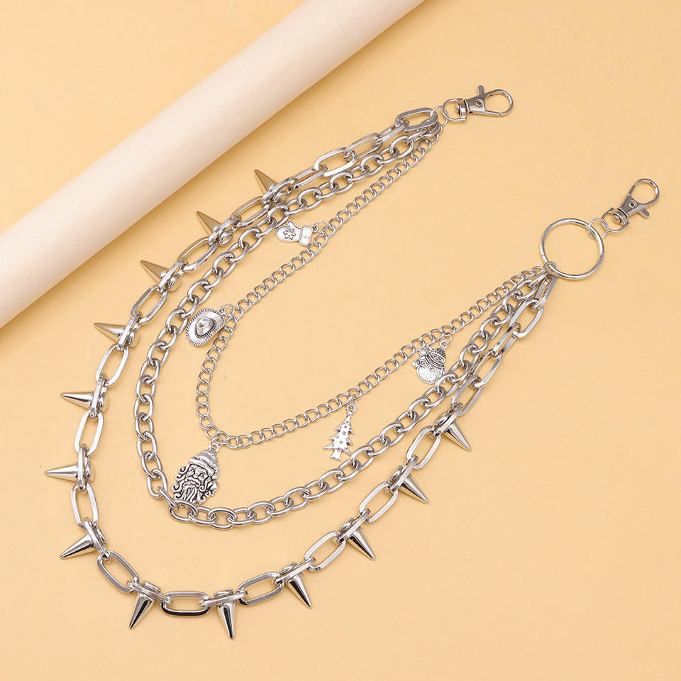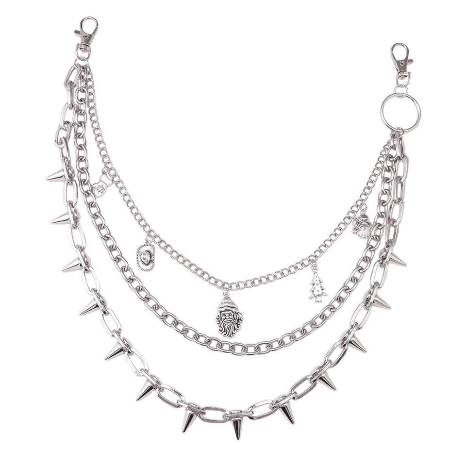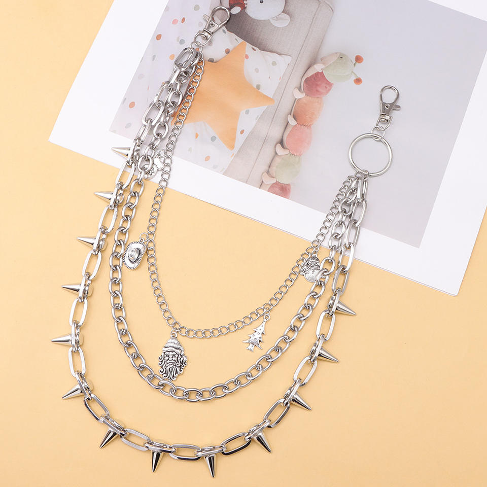 Cadena de cintura unisex de aleación de zinc con colgante de remaches de punta multicapa, accesorio casual de mezclilla estilo Hip Hop, Blanco K