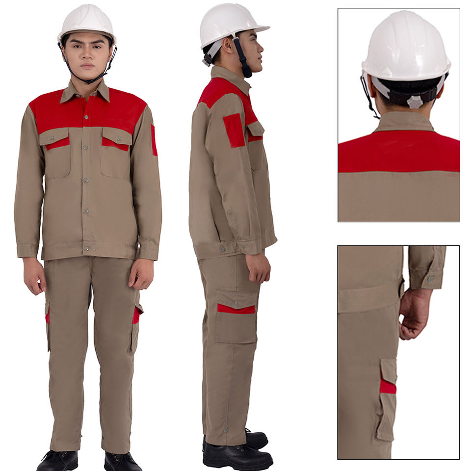Conjunto de uniformes unisex de algodón y poliéster duradero para uso en construcción y fábrica