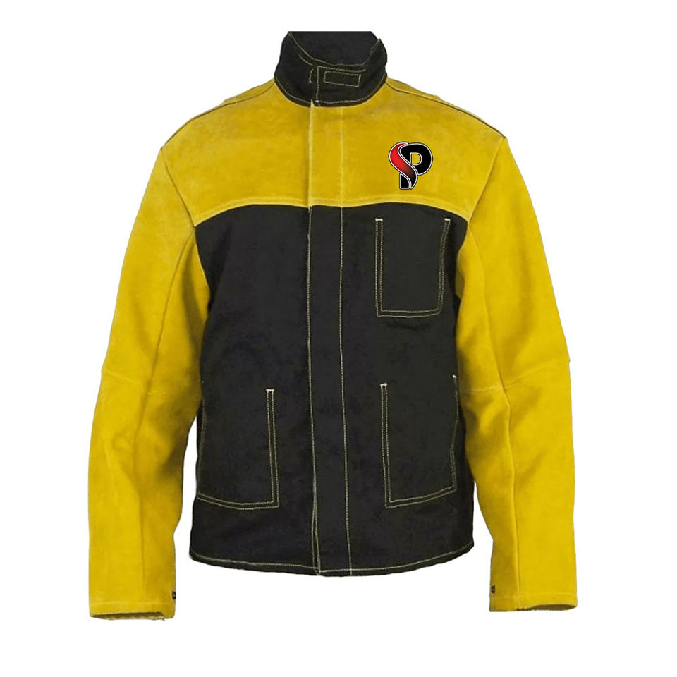 Chaqueta de soldadura de cuero amarillo y azul unisex chaquetas de seguridad de trabajo de cuero de vaca dividida resistente para soldadores chaquetas de seguridad