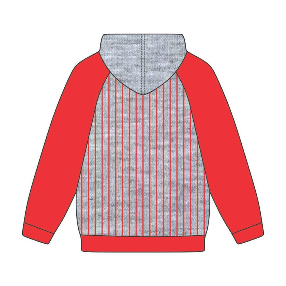 Sudadera con Capucha DST Delta Grey Body Red Raglan Pinstripes, Mezcla de Algodón, Ropa de Hermandad Griega Divine Nine