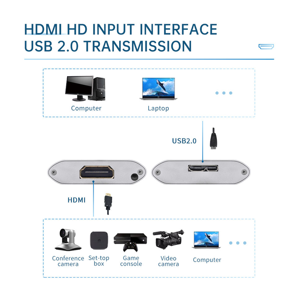 Caja de captura de vídeo Unisheen UC2000H XSplit AMCAP transmisión en vivo OBS Vmix Wirecast VLC 1080P50/60