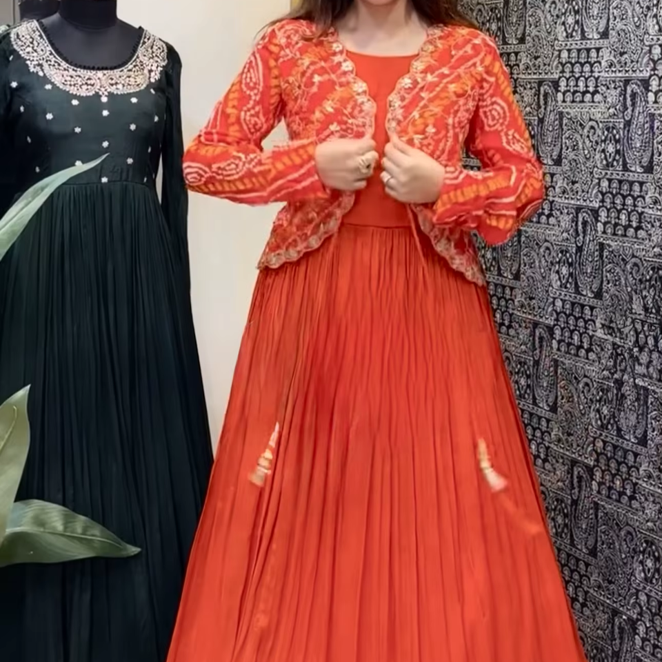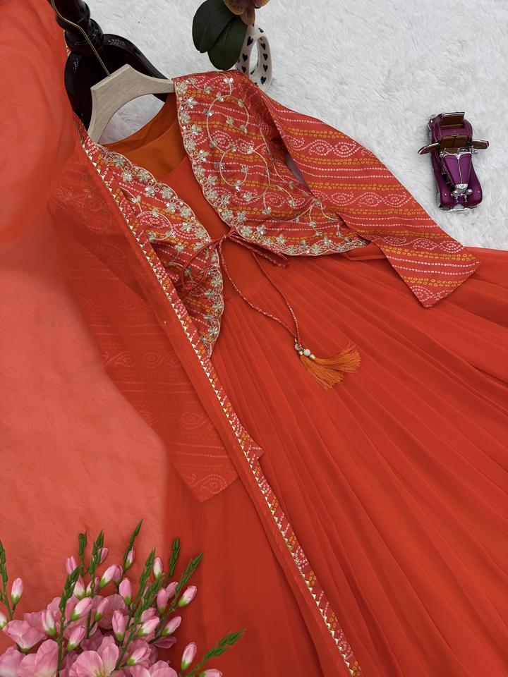 Conjunto de Vestido Anarkali de Georgette Premium Unity Luxure con Chaqueta Bordada y Dupatta de Malla, Ropa Festiva de Lujo