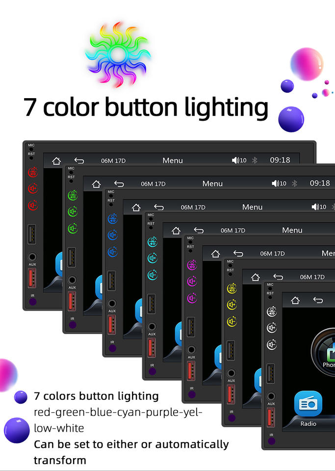 Reproductor Multimedia Universal para coche, reproductor inalámbrico de 7 pulgadas, 2 Din, Android, RDS, FM, AM, táctil, USB, AUX, Mirror link, reproducción de películas