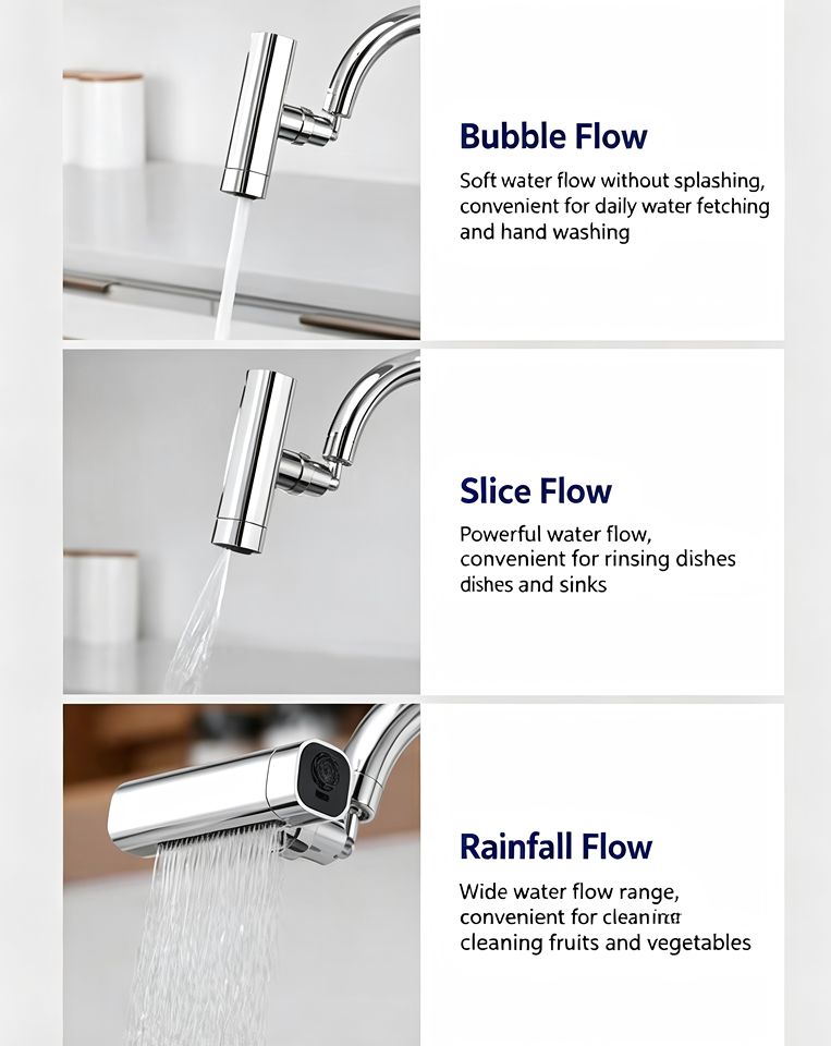 Extensor de Grifo de Cocina Universal con Rotación de 360 Grados y 4 Modos: Aireador, Lluvia, Cascada y Chorro