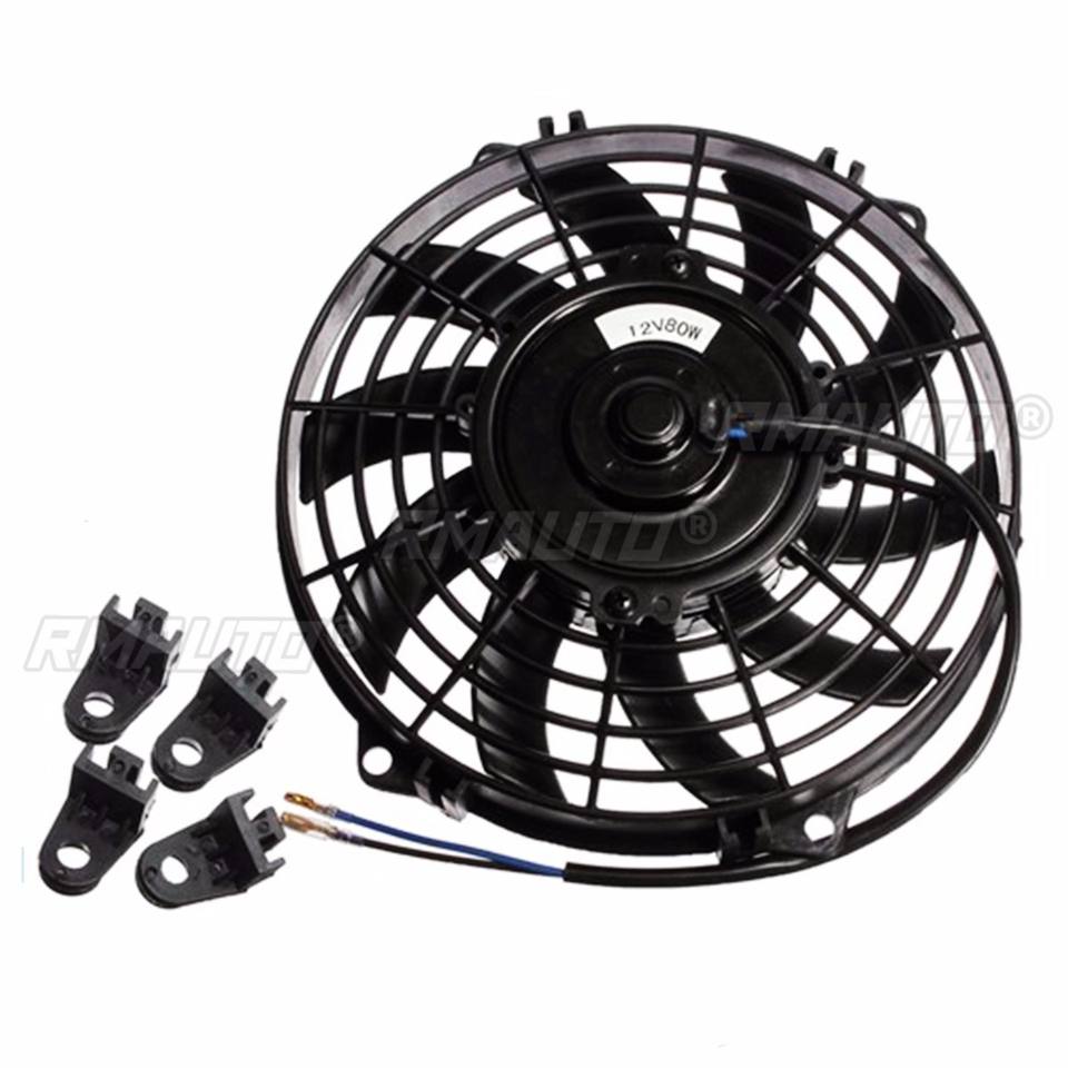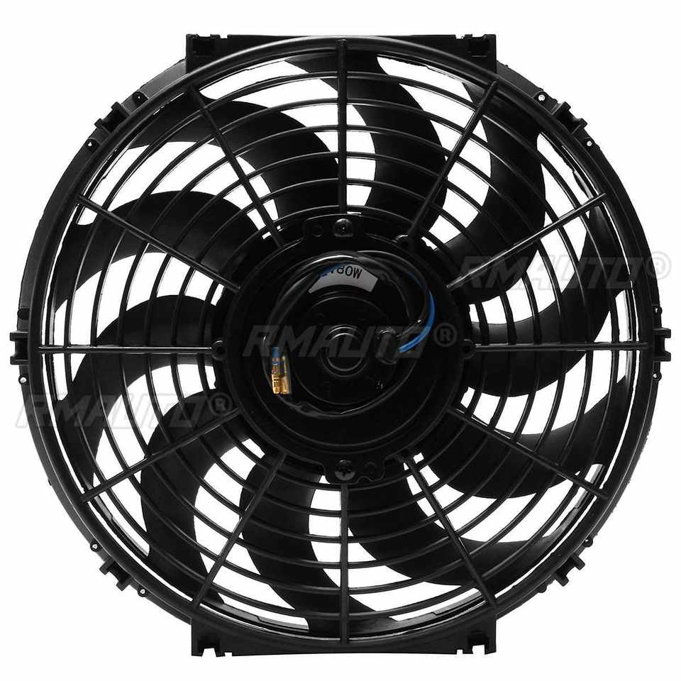 Ventilador de Radiador Eléctrico Universal de 9, 10, 12 y 14 Pulgadas, 12V, 80W, 2100 RPM, con Aspas Curvas de Empuje y Tracción