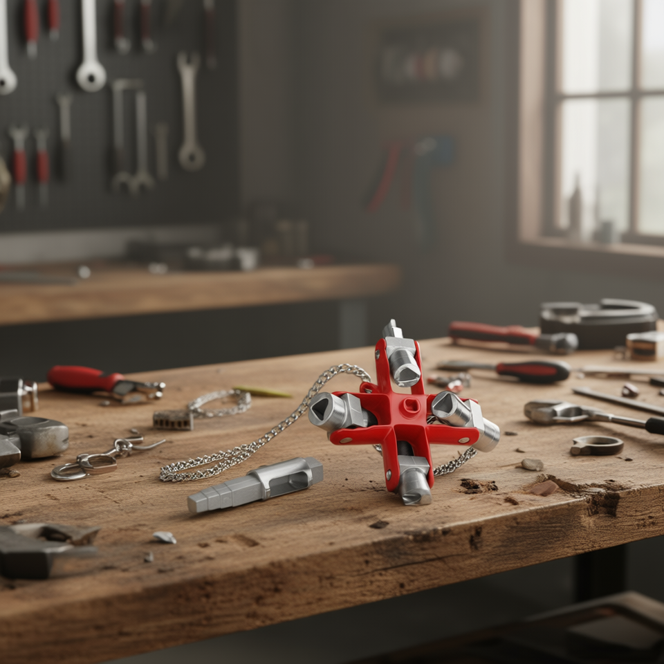 Llave Universal para Sistemas de Cerradura Comunes, Herramienta Multiusos con Cadena y Porta-Bits