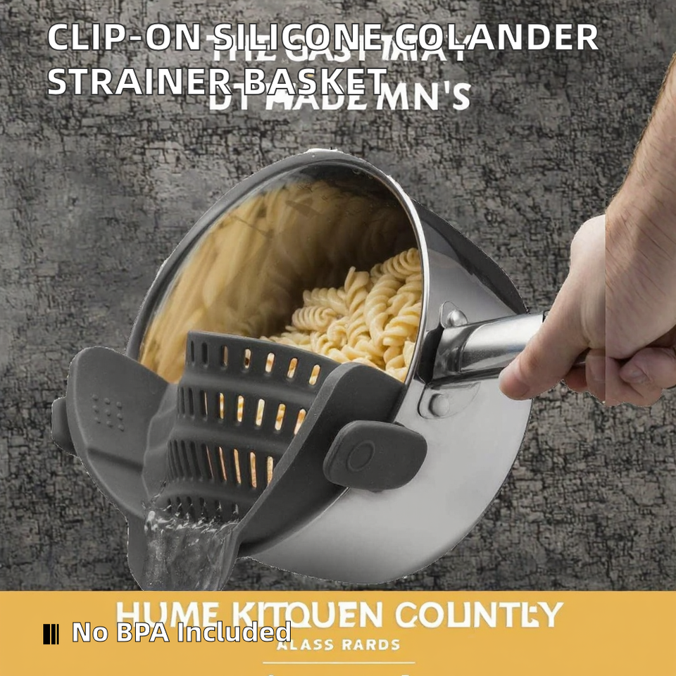 Colador Universal de Cocina con Clip, Ecológico, Libre de BPA, de Silicona, Plástico PP y Ganchos de Acero Inoxidable para Escurrir Pasta