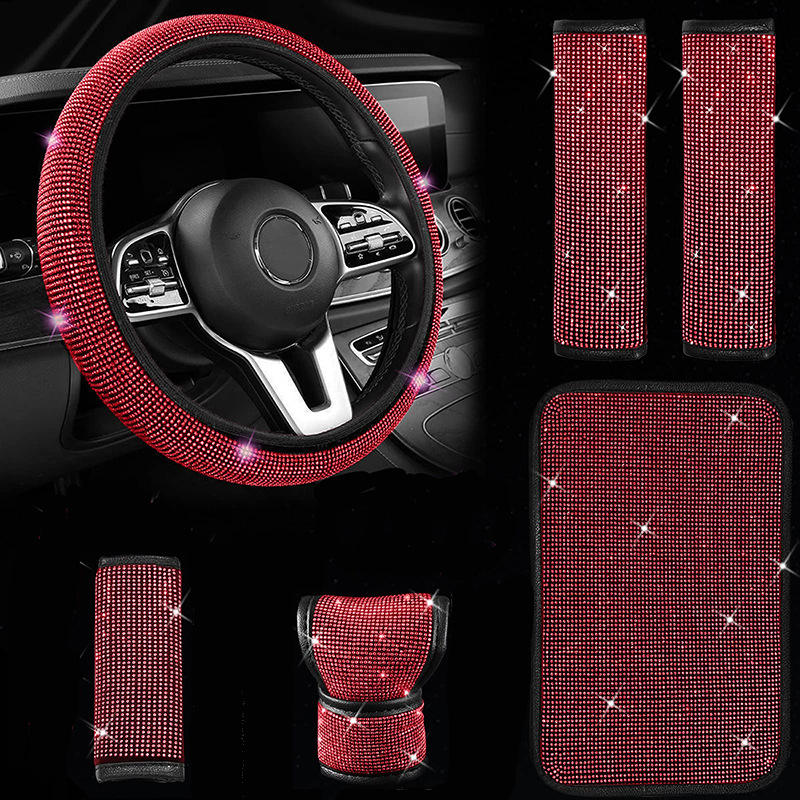 Universal Cool Leather Steering Wheel Cover Set Bling Diamond Nuevo accesorio automotriz para coche de mujer