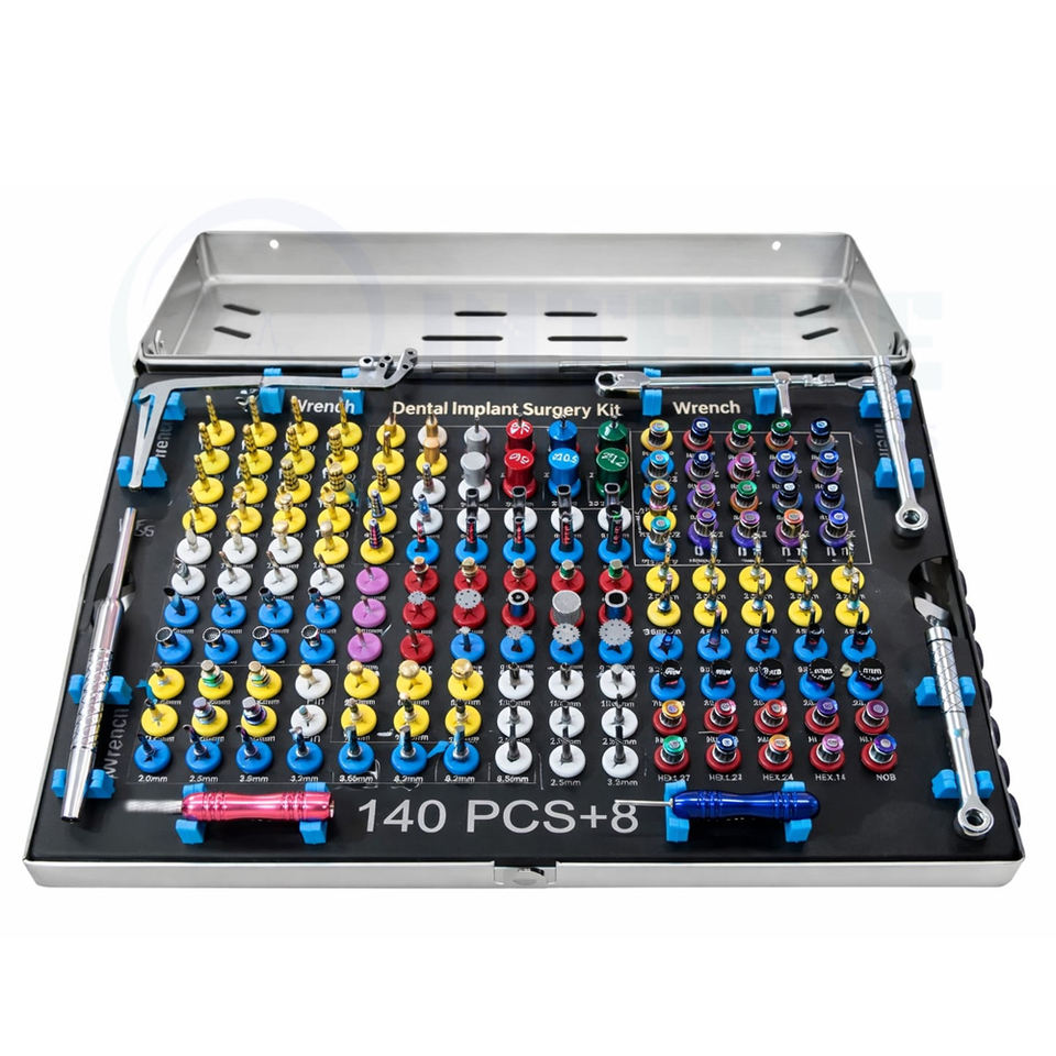 Kit de Instrumentos Dentales de Implante de Acero Inoxidable Manual Universal, 140 Piezas, Caja Completa de Herramientas Quirúrgicas para Colocación de Implantes