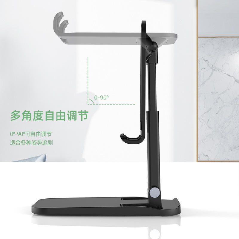 Universal Foldable Mobile Phone Stand For Office Desktop Telescopic Adjustable Holder With Tablet Support RQ2149 Black
