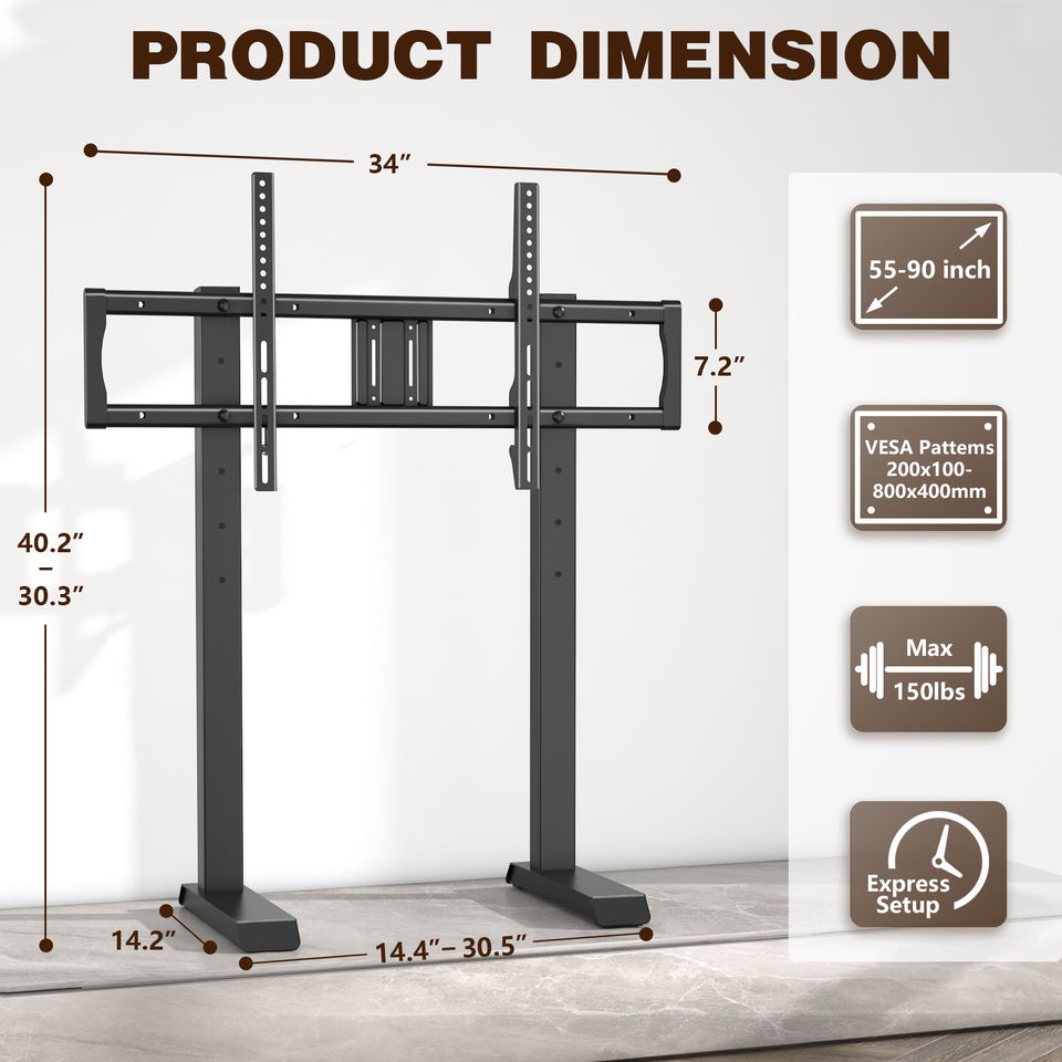 Soporte Universal Ajustable en Altura para Mesa con Dos Patas, Soporte de Escritorio para TV LCD Plasma VESA para Pantallas de 32-86 Pulgadas