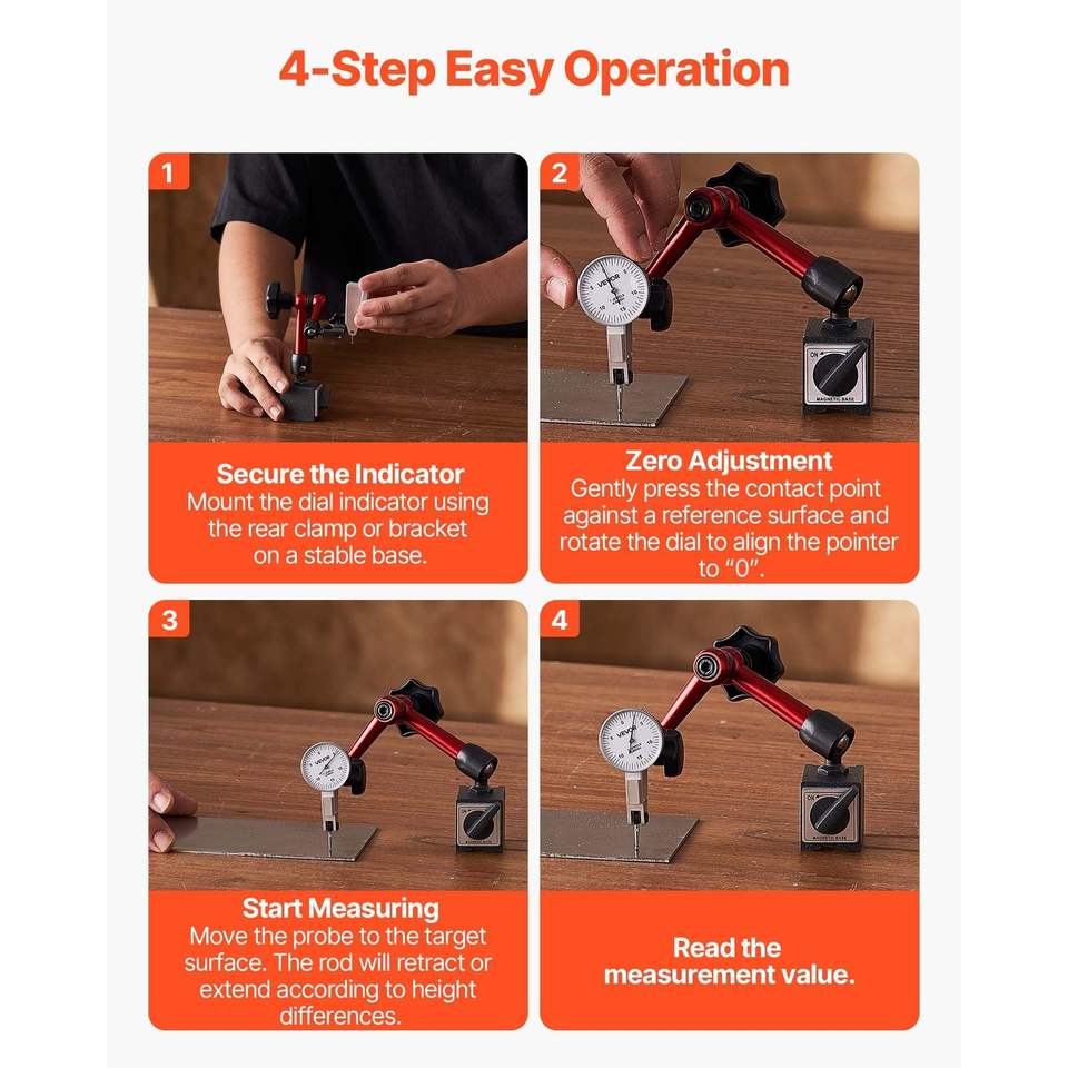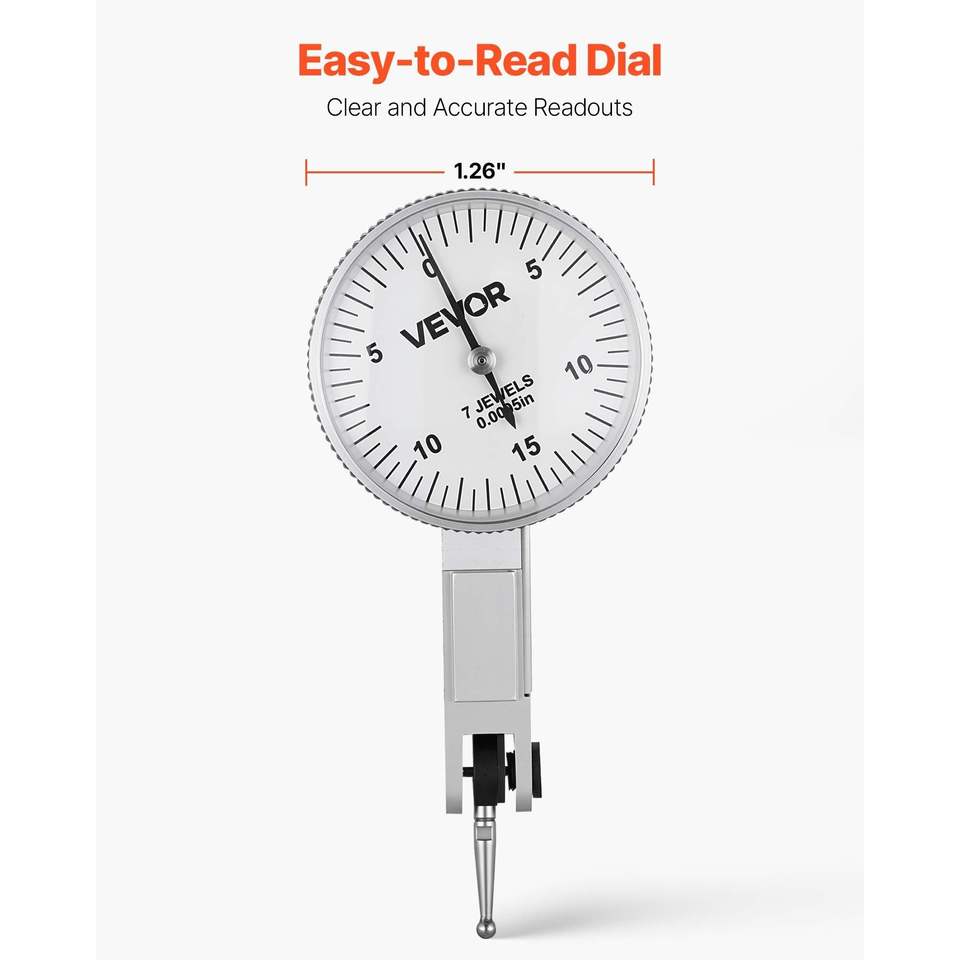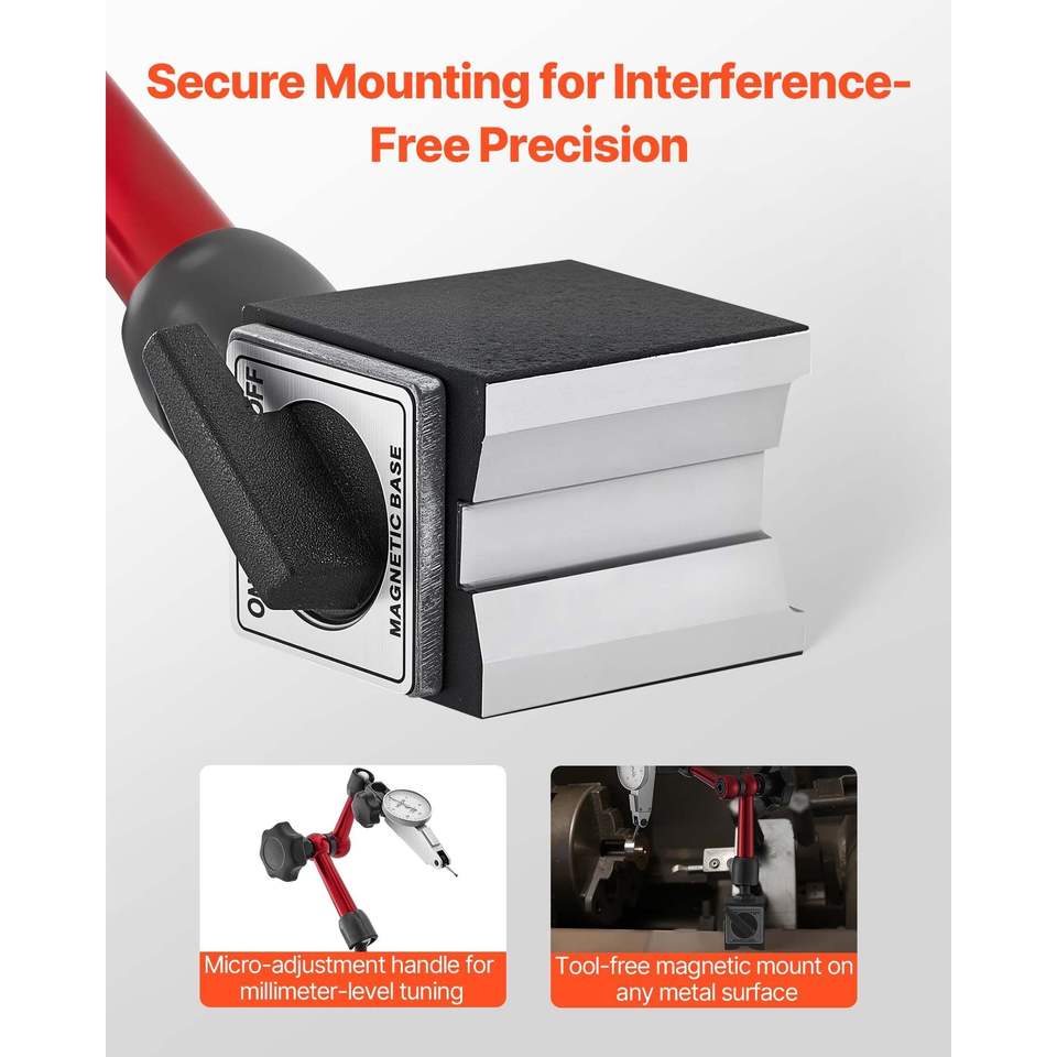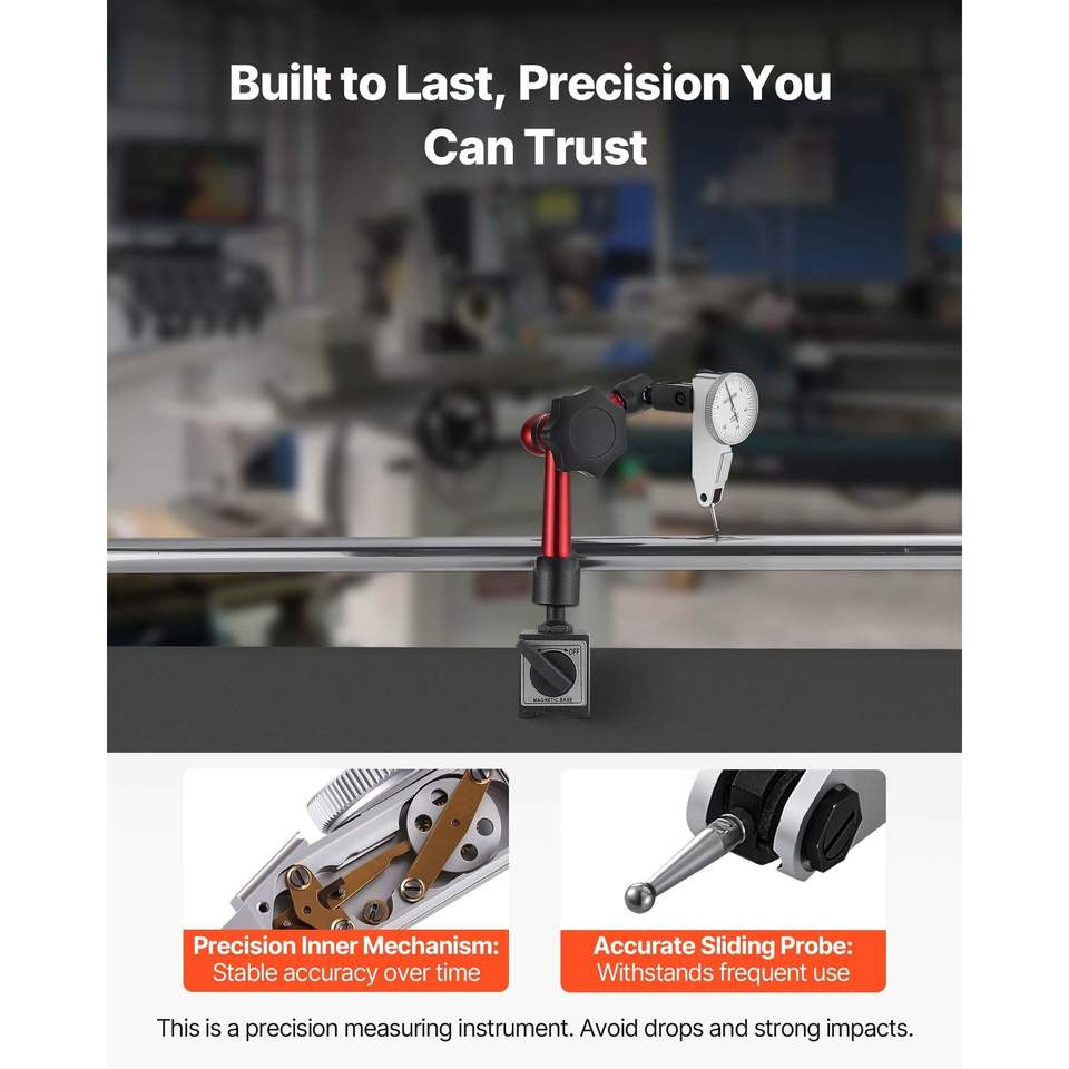 Estuche de Almacenamiento con Base Magnética Universal y Dial para Indicador de Prueba, Precisión de 0.0005 Pulgadas, Rango de 0-0.03 Pulgadas, Mango de Bola Micro