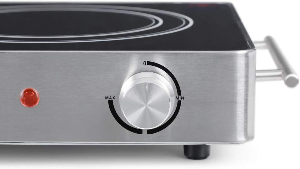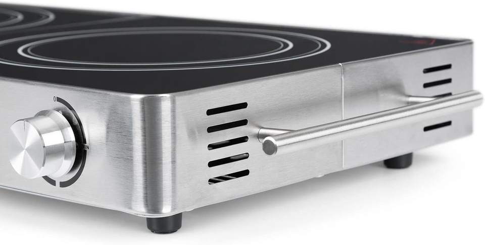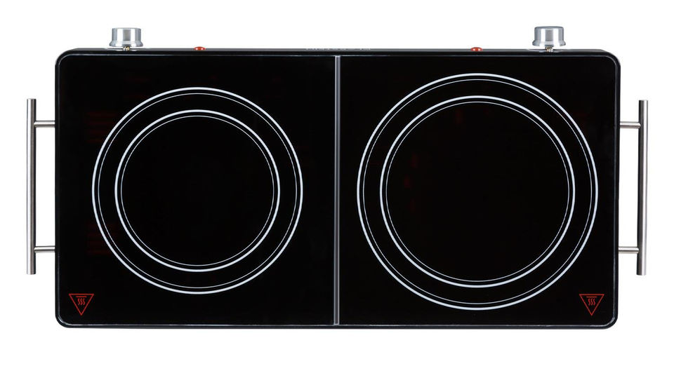 Cocina Eléctrica de Cerámica Universal para Exteriores de 3000W, Doble Quemador, Placa Radiante Infrarroja con Tapa de Vidrio y Asa de Acero Inoxidable