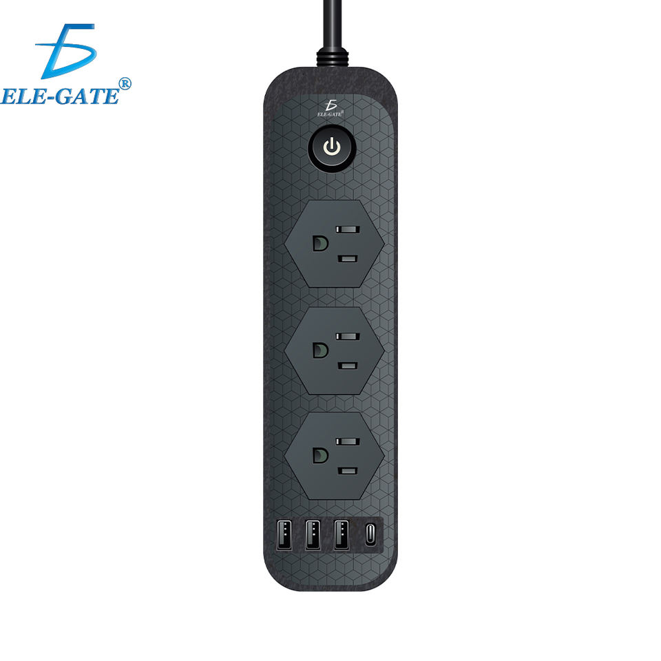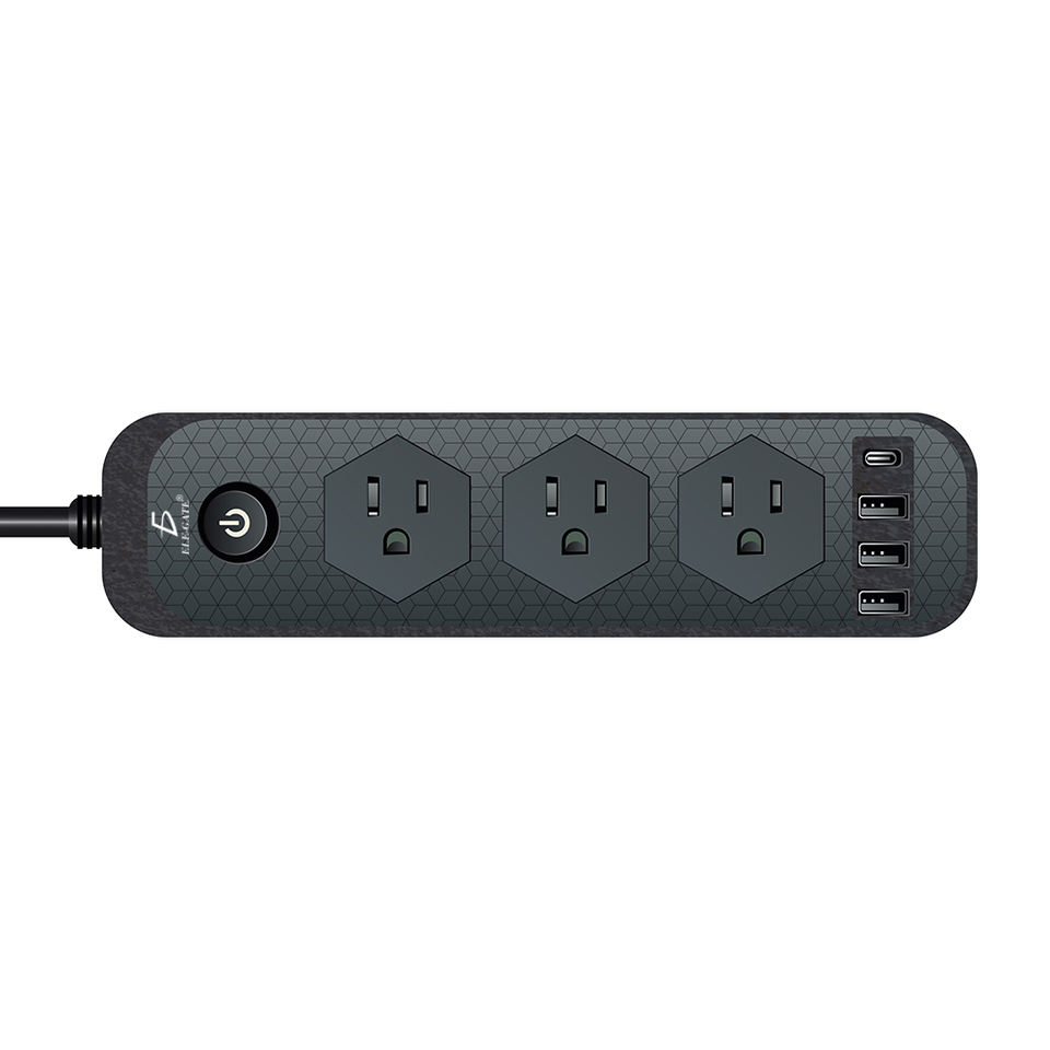 Regleta Universal con 3 Tomas de Corriente Alterna, 3 Puertos USB, 1 Puerto Tipo C, Cable de 5m, Enchufe Tipo USA, Voltaje Nominal de 240V para una Carga Rápida y Segura