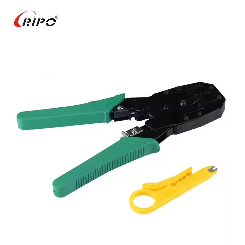Crimpadora de Red Universal RJ45/RJ11/RJ12, Herramienta de Crimpado de Cabezal de Cristal con Abrazadera de Cable para Reparación de Cables
