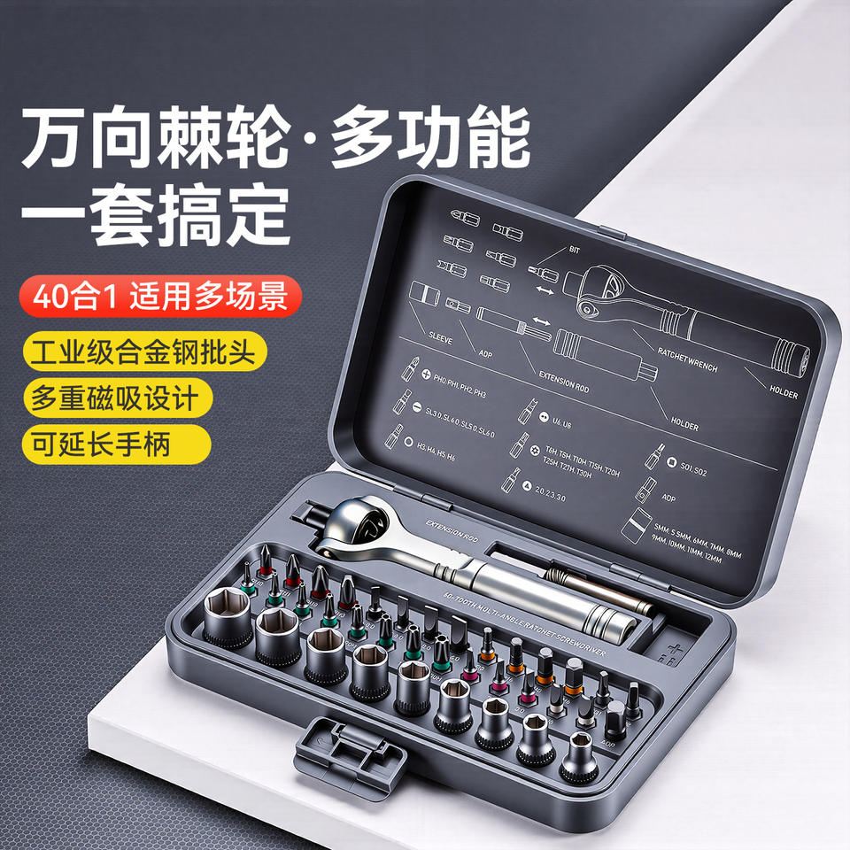 Universal Ratchet Screwdriver Set 40 Pcs Multipurpose Magnetic With Forward And Reverse Rotation For Household Diy Use