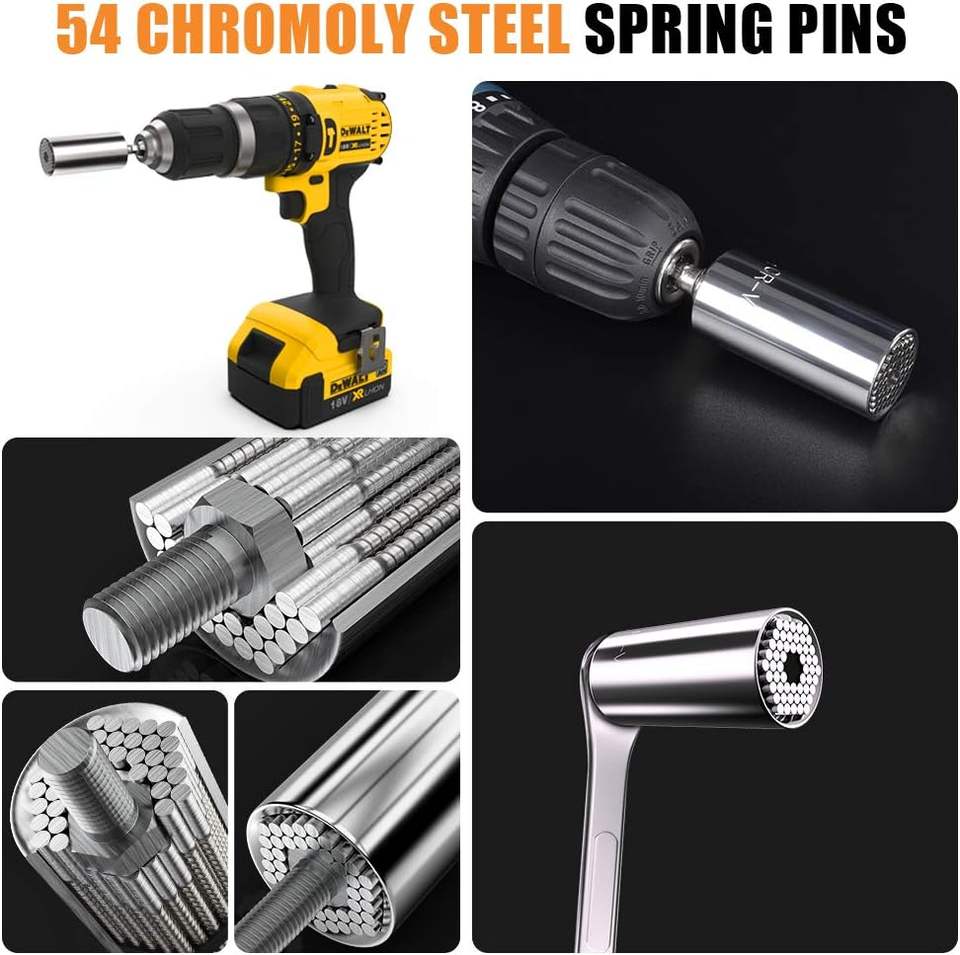 Herramientas de enchufe universal Regalos para hombres: juegos de herramientas profesionales de 7mm-19mm Super Socket Adaptador de taladro eléctrico Gadgets geniales únicos
