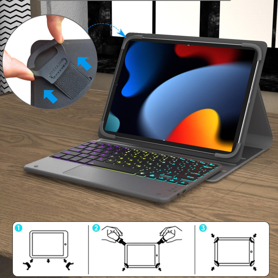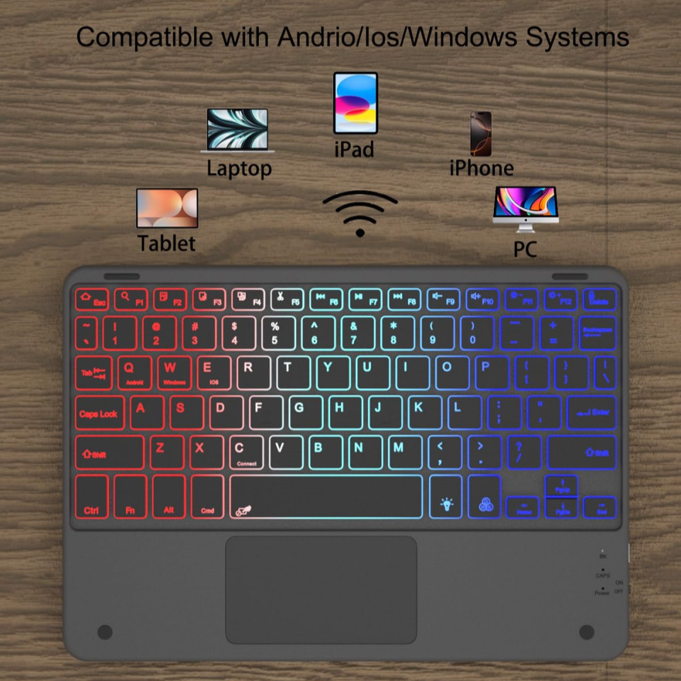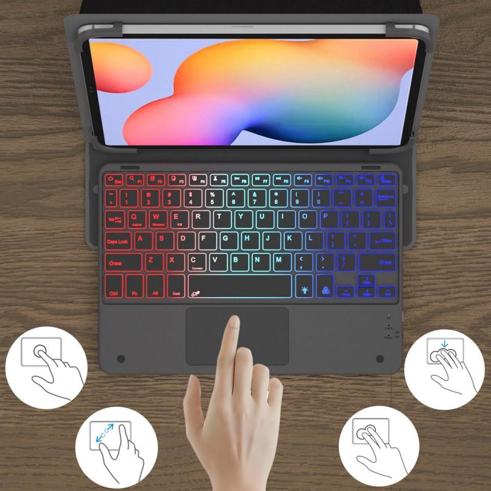 Teclado universal para tableta con funda de panel táctil, teclado inalámbrico retroiluminado arcoíris para tabletas Android/Ios/Windows 9-11 Laudtec