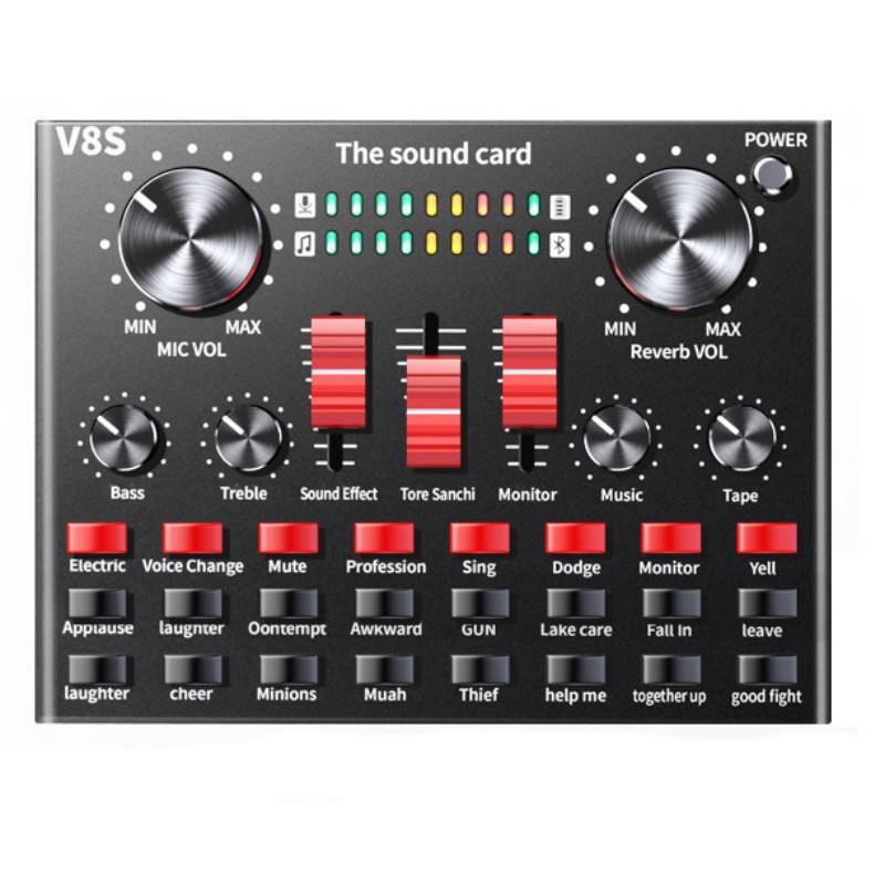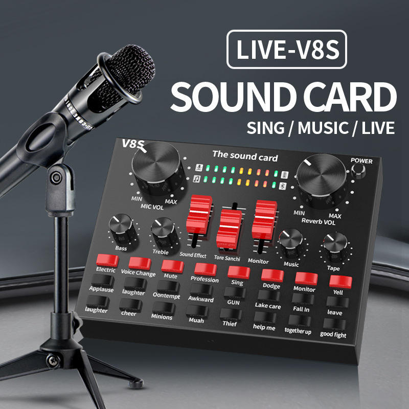 Universal V8S Transmisión en vivo Tarjeta de sonido Teléfono móvil/Computadora Ancla Grabación Mezclador de sonido para BM800 LGT 240