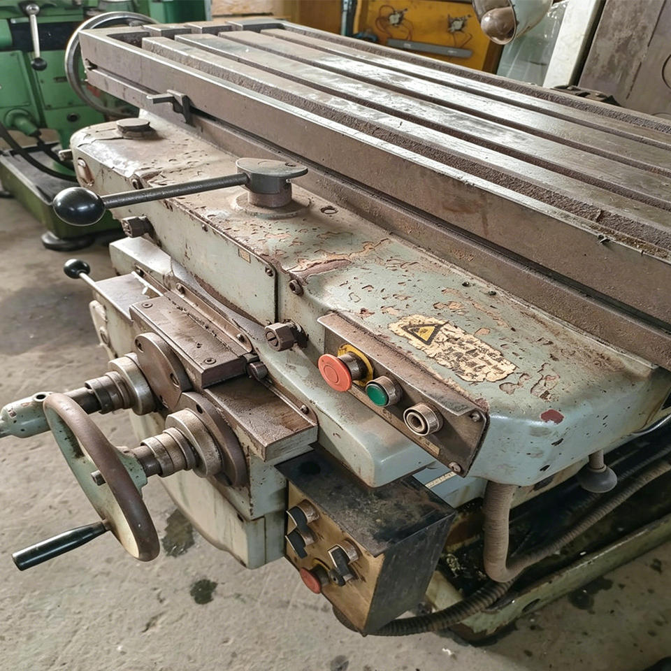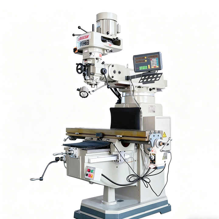 Fresadora Vertical Universal con Cabezal de Husillo Ajustable, Control de Avance Manual y Accesorios Completos para Trabajos en Metal