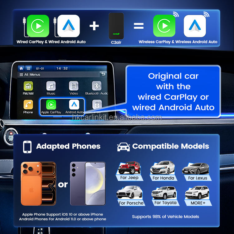 Modelo de coche compatible:Todos los coches con CarPlay con cable/Android Auto con cable de fábrica OEM