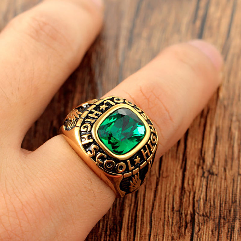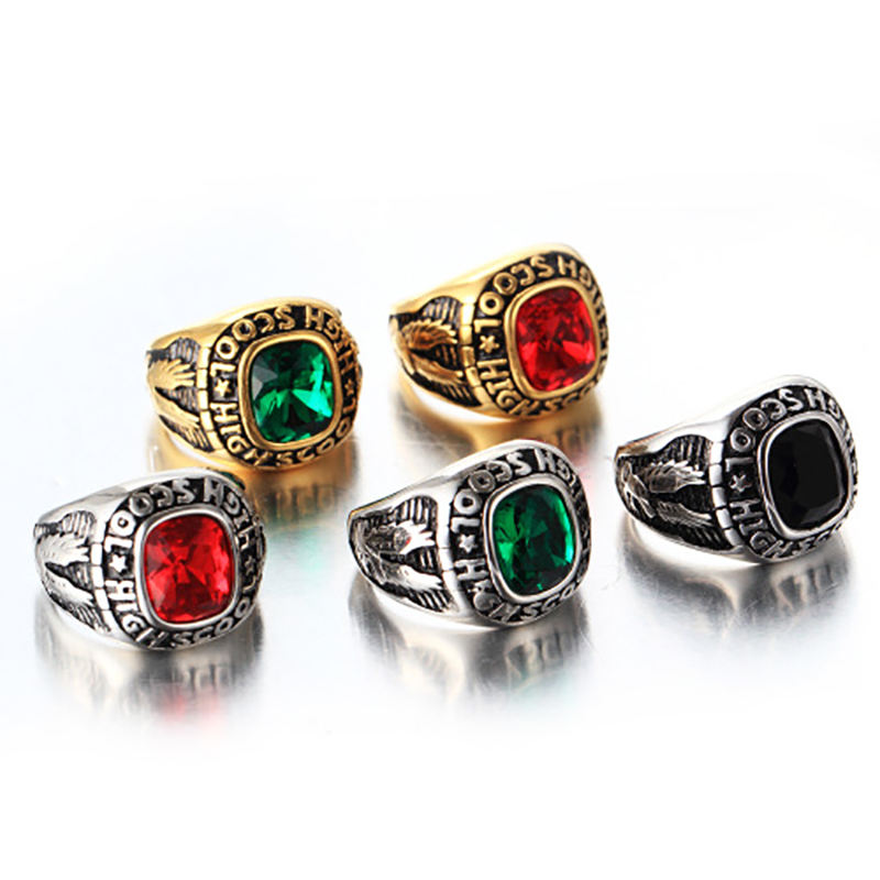 Anillo de clase universitario personalizado para graduación, único y económico — estilo punk con circonita, acero inoxidable y esmalte; anillo de compromiso con letra (Beyaly)