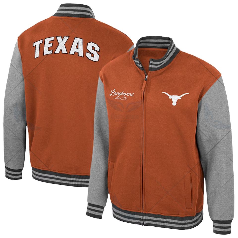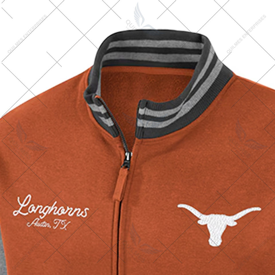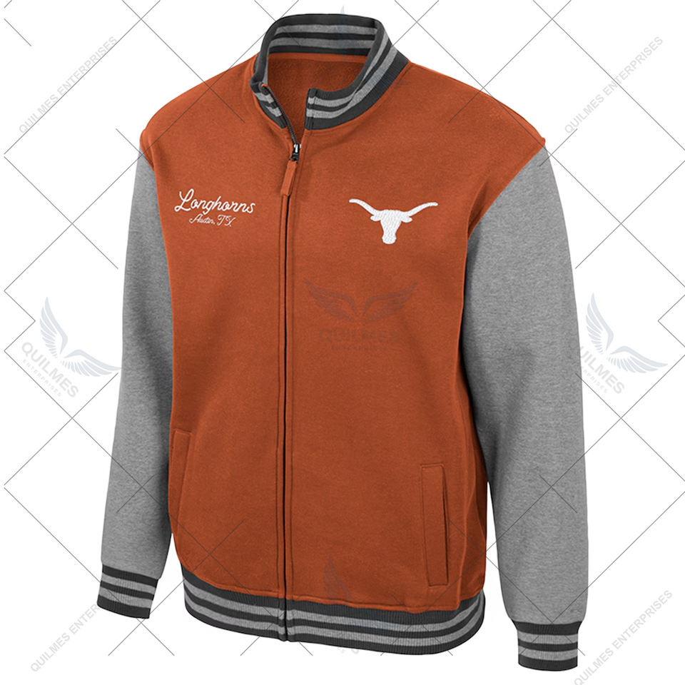 Chaqueta Universitaria Texas Longhorns Personalizada Ambi Turner con Cremallera Completa, Alta Demanda, Color Naranja Quemado, Bordada al por Mayor