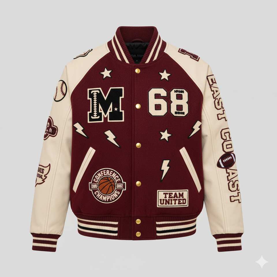 Palabras clave:Chaqueta universitaria, chaqueta de béisbol, chaqueta de estudiante